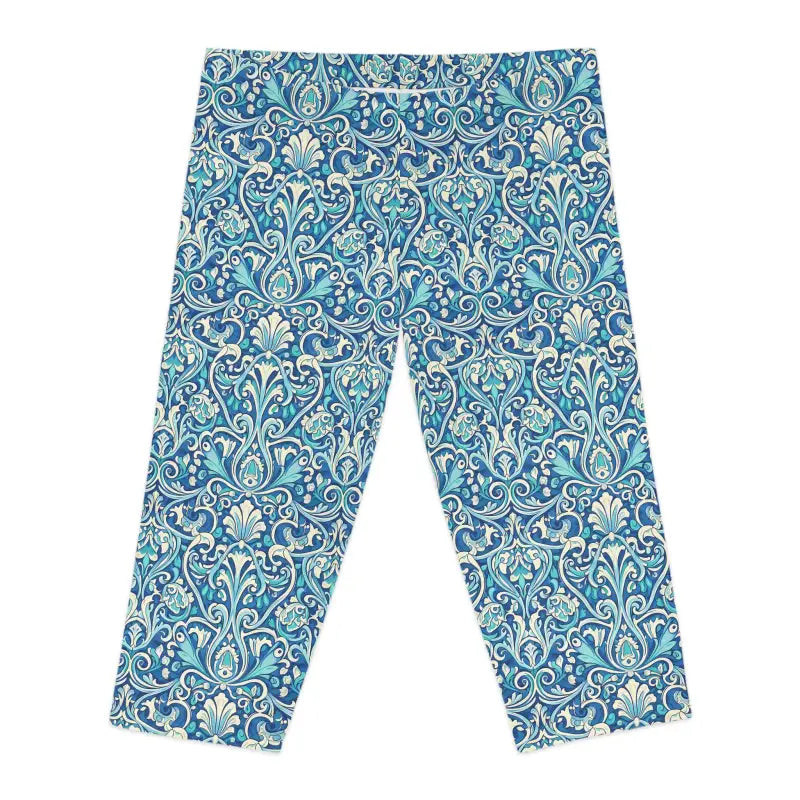 Picture yourself gliding through your day in these gorgeous floral damask capri leggings featuring an ornate yet soft blue pattern that looks like it was lifted straight from a Mediterranean villa. The flowing design brings an artful rhythm to everything you do, whether you're flowing through morning yoga or exploring weekend markets.