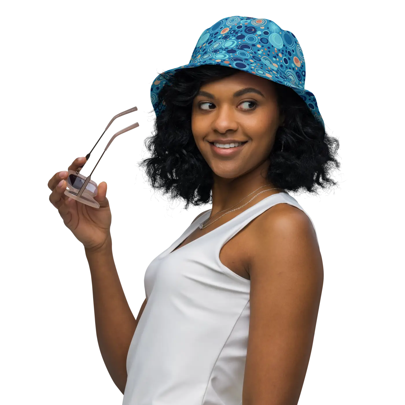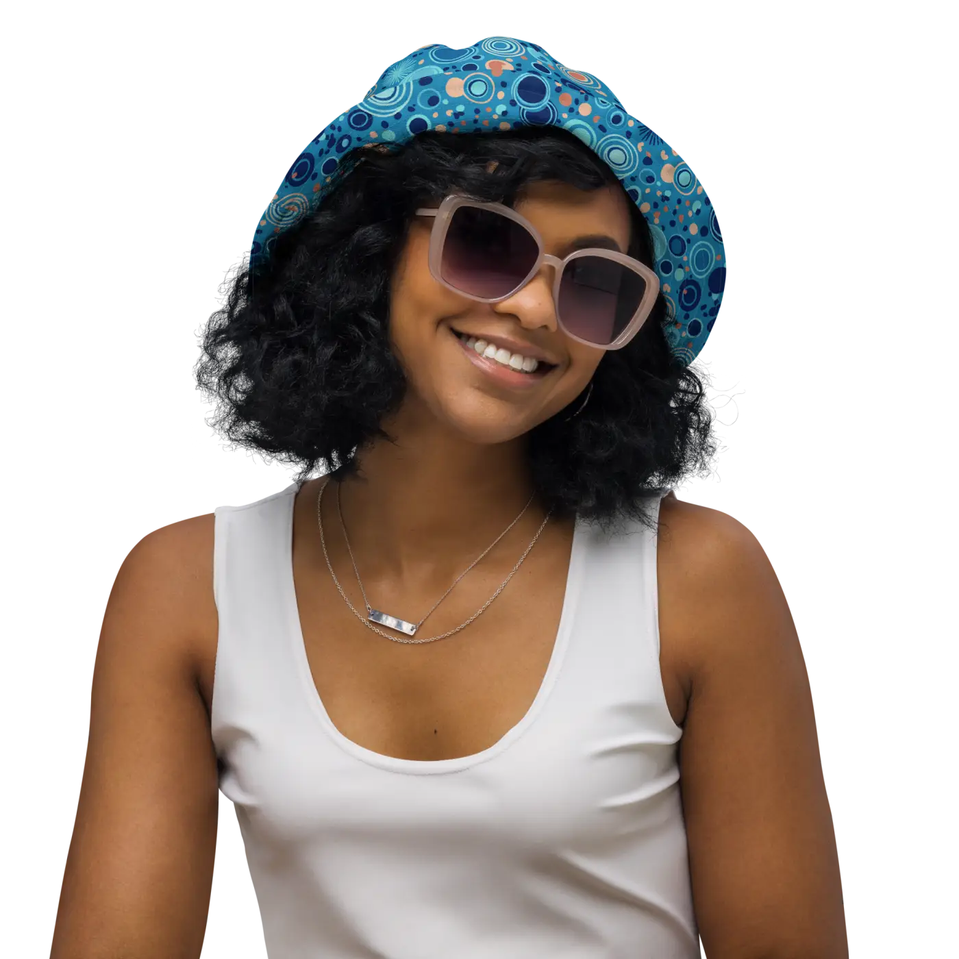 Inspired by the fresh, bold energy of summer gardens and city streets, this reversible bucket brings a soft, breathable feel that's ideal for everyday wear. The blue floral dot print adds a splash of color and charm, while the flip side keeps it classic and cool. Made with sustainable materials, this reversible bucket blends fashion with eco-friendly values, fitting perfectly into a conscious, warm lifestyle.
