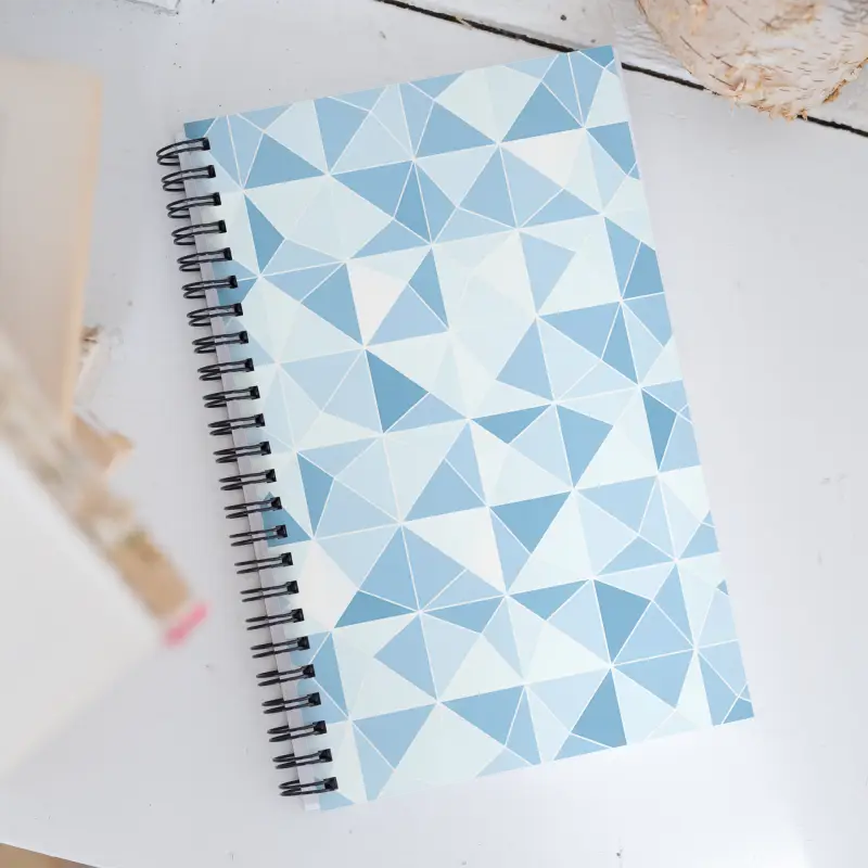 The vivid blue geometric pattern brings energy to your desk, while the spiral design lets you flip pages with ease. Perfect for dreamers, planners, and doers who crave a little motivation in every scribble.