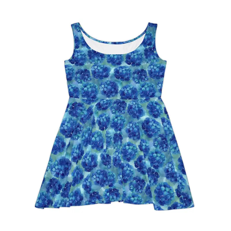 Blue Hydrangea Skater Dress with Flowing Floral Flair
