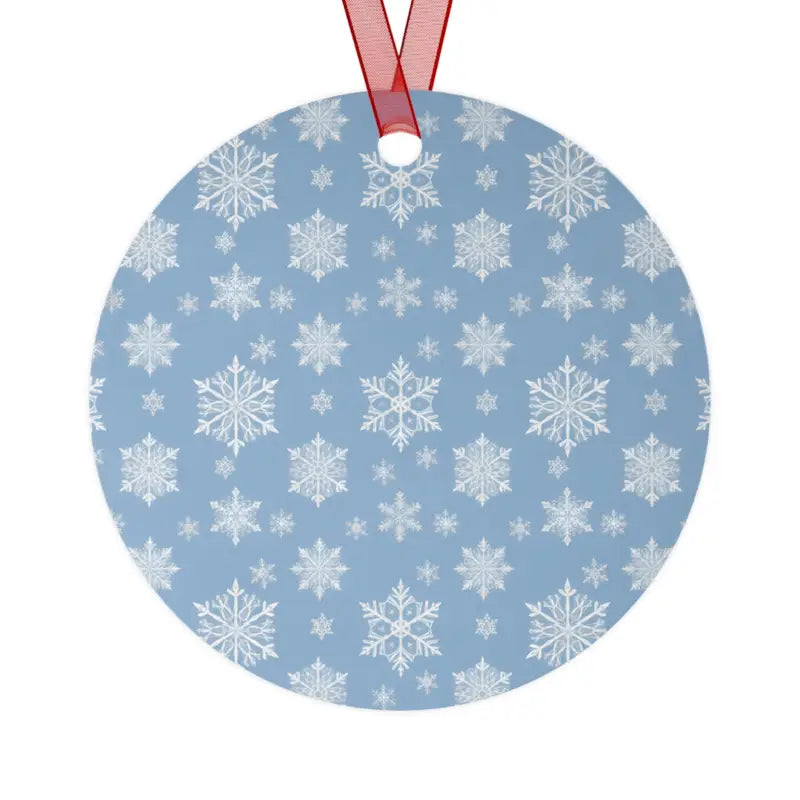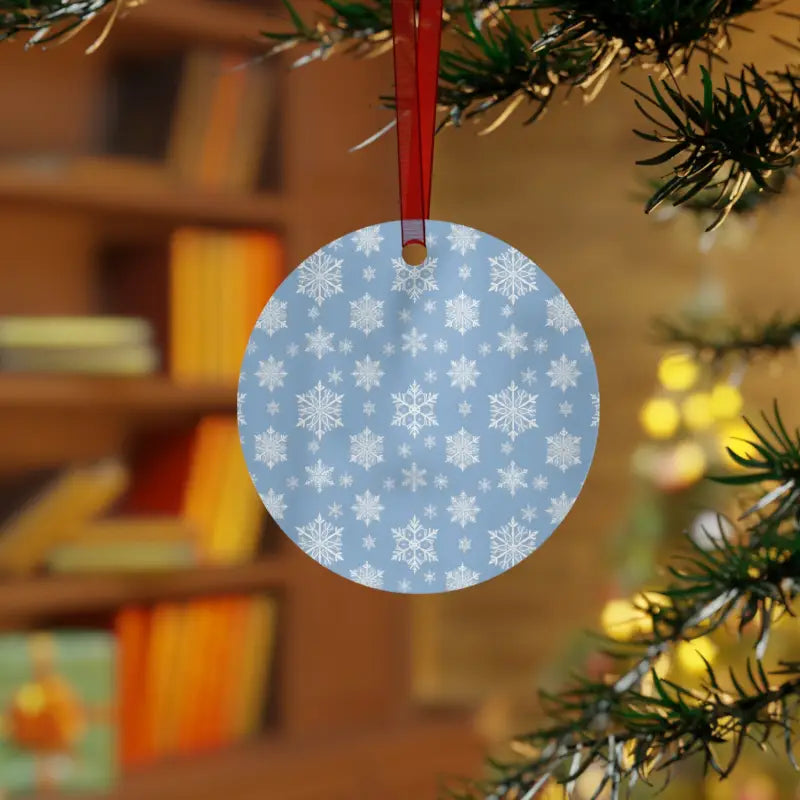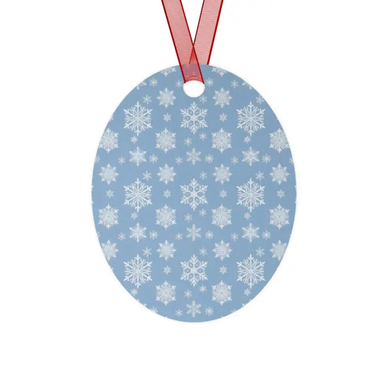 Feel the hush of a winter morning as this metal ornament in white aluminum captures the soft glow of freshly fallen snow, its vibrant double-sided print dancing in the twinkle of holiday lights. Imagine unwrapping a ring of ice crystals spun into Bell, Tree, Round, or Oval shapes, each ready to sparkle in your home.
