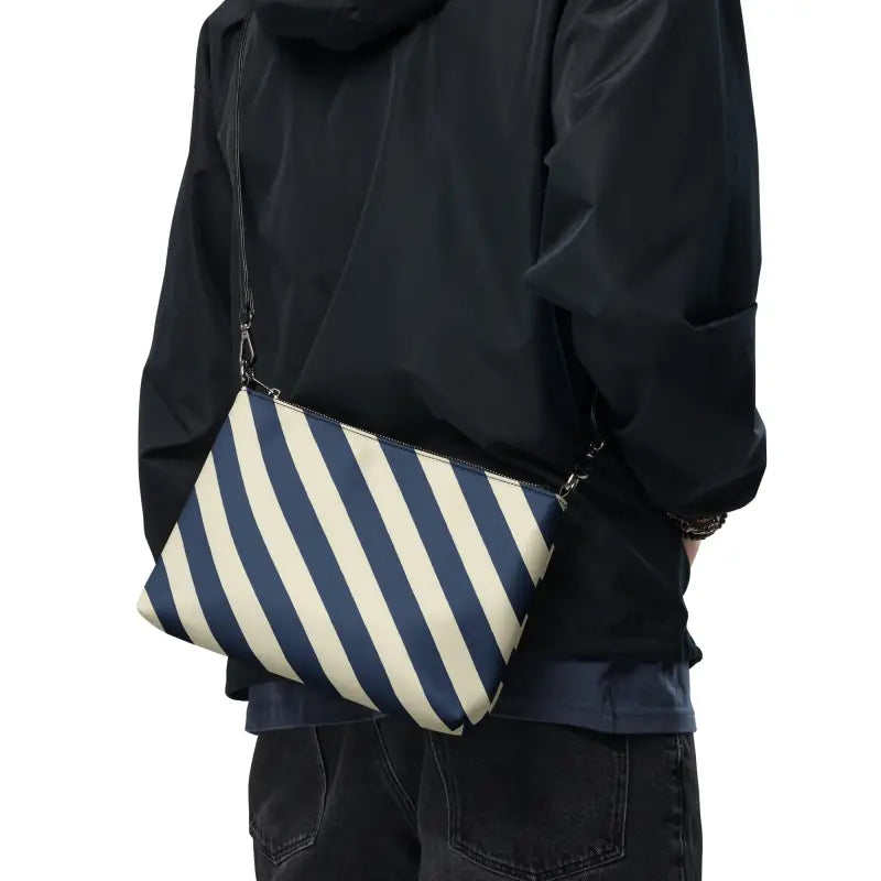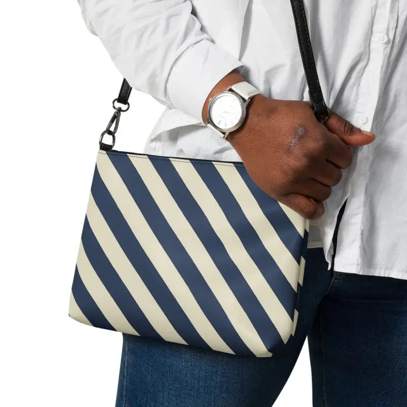 Feel the thrill of hands-free freedom as you sling this blue-striped crossbody bag onto your shoulder and step into a world of endless possibilities. Soft faux leather meets gleaming dark gray hardware, and the playful blue stripes catch the light as you zip into your day—whether you’re chasing sunsets or morning lattes.
