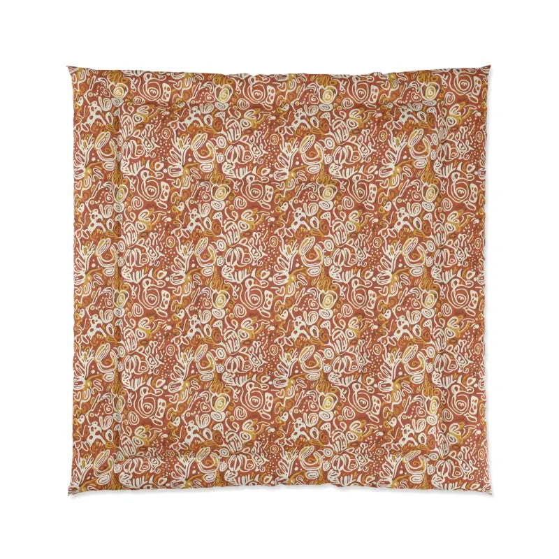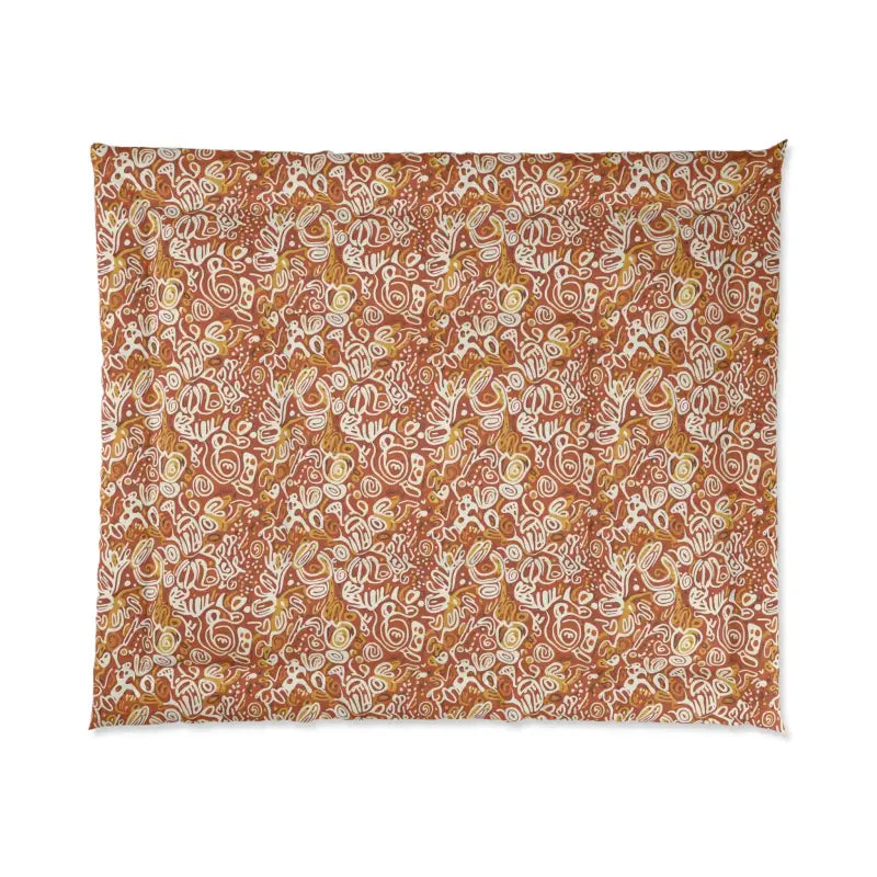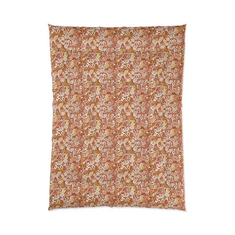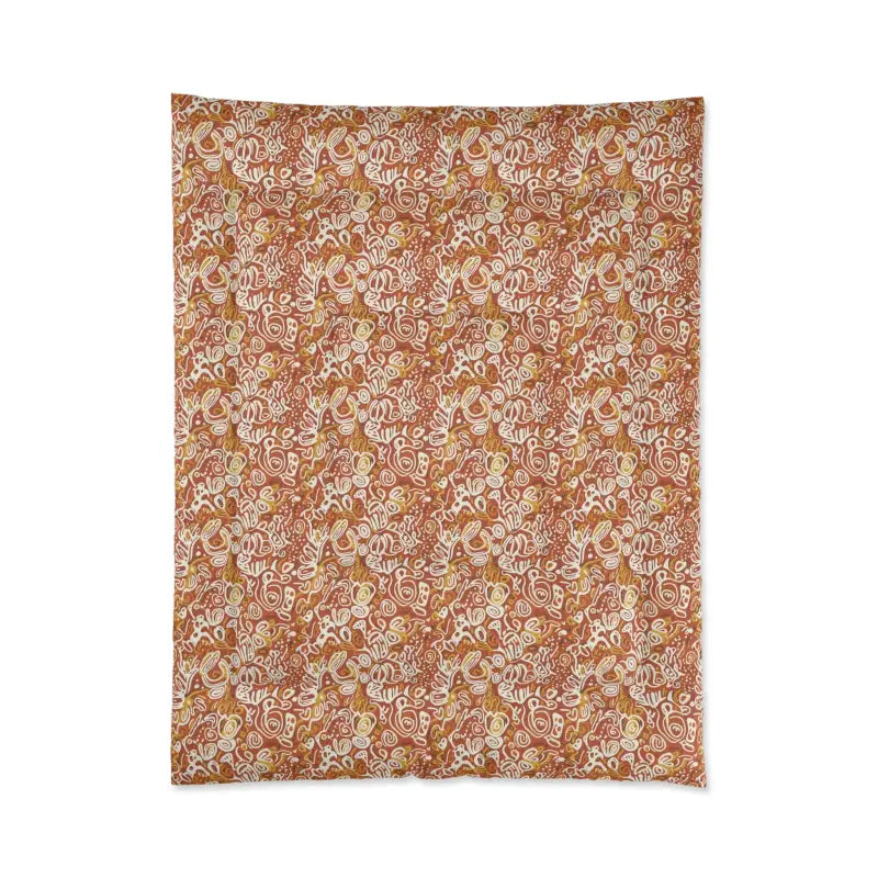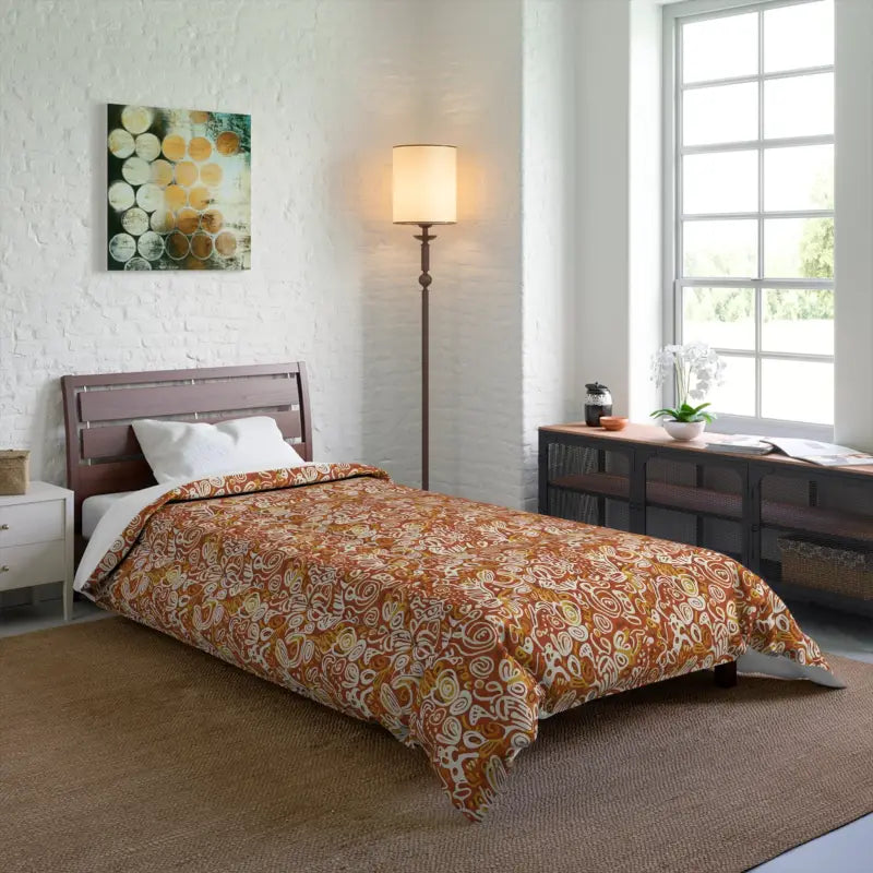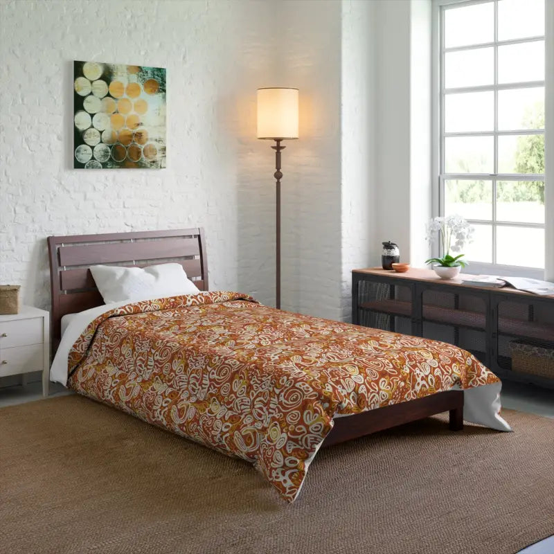 Boho Paisley Comforter - Rustic Orange Floral Pattern Bedding - DipaliZ