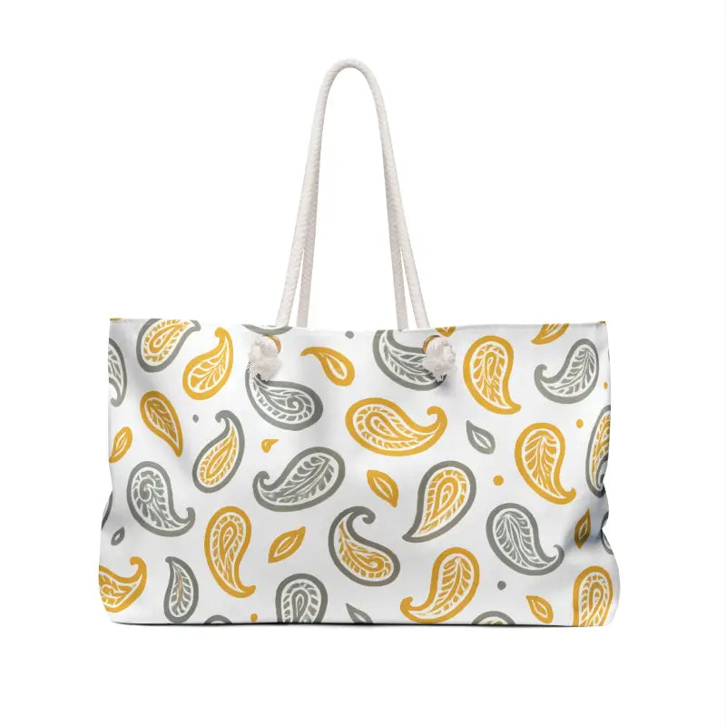 Perfect for weekend getaways or daily errands, this paisley weekender bag blends laid-back boho style with practical function. The swirling paisley motifs and vivid hues spark wanderlust, while sturdy handles and a spacious interior keep your essentials organized and ready to go.
