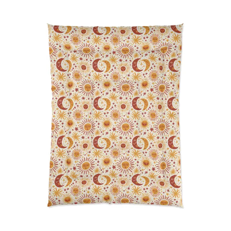 Boho Sun Moon Comforter - Celestial Floral Vintage Style - DipaliZ