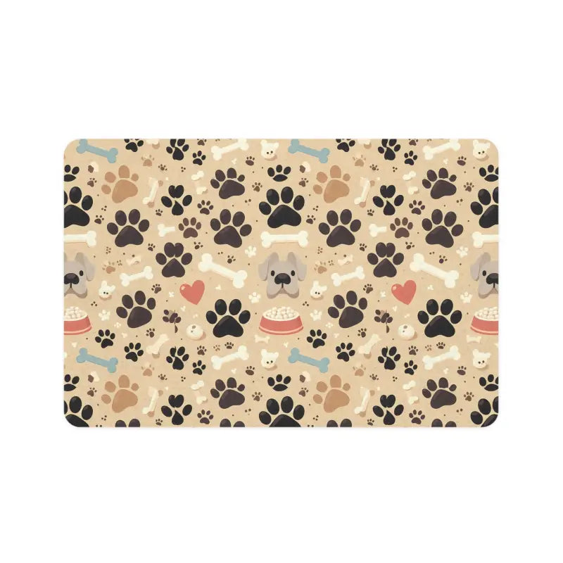 Print: Bones and Paw Print design that adds a fun, stylish, and adorable edge to your pet's dining space while keeping things neat.