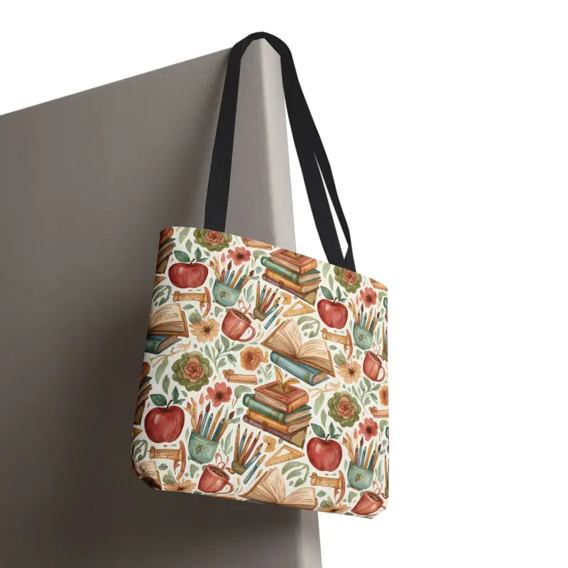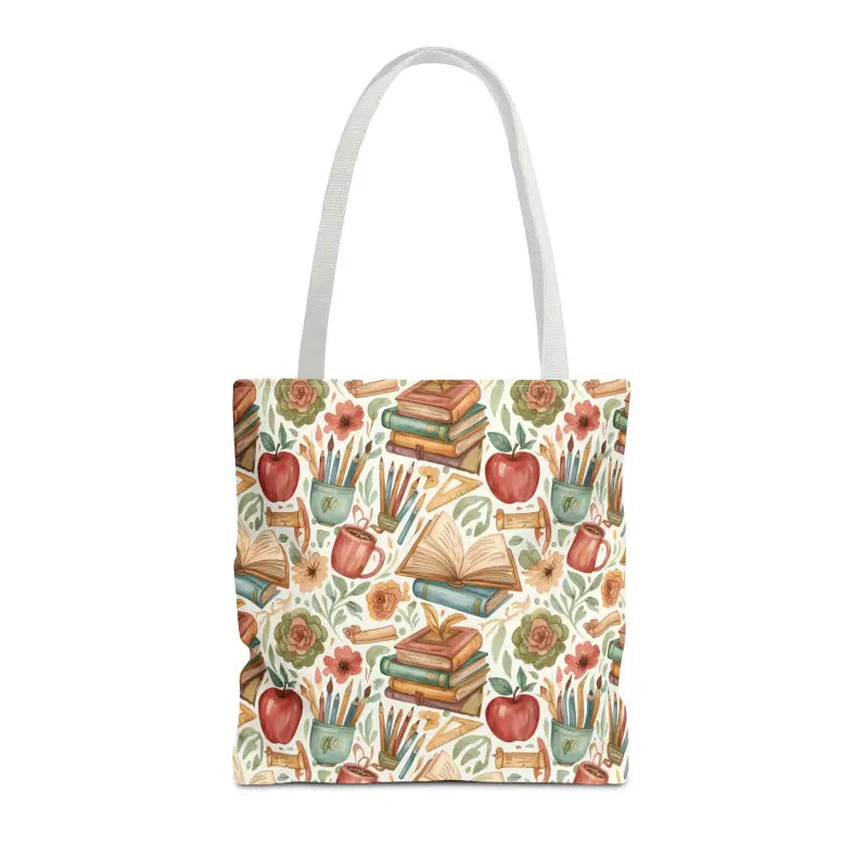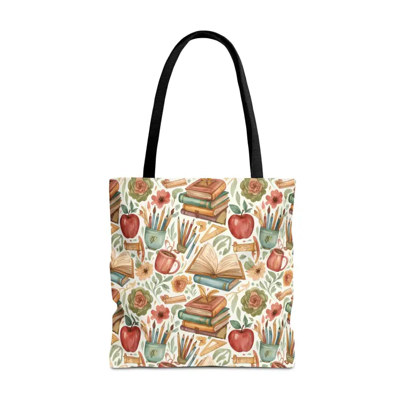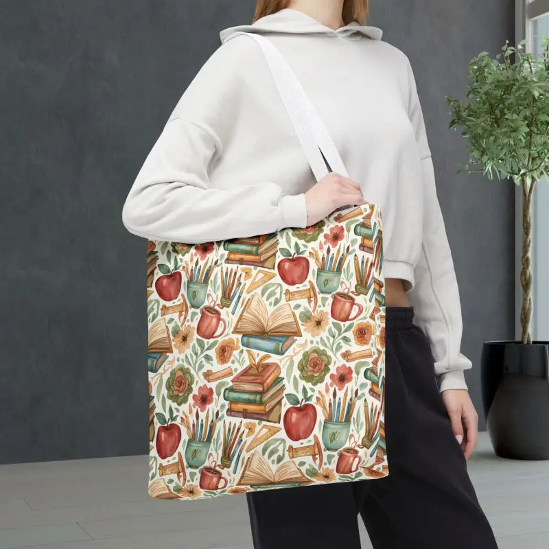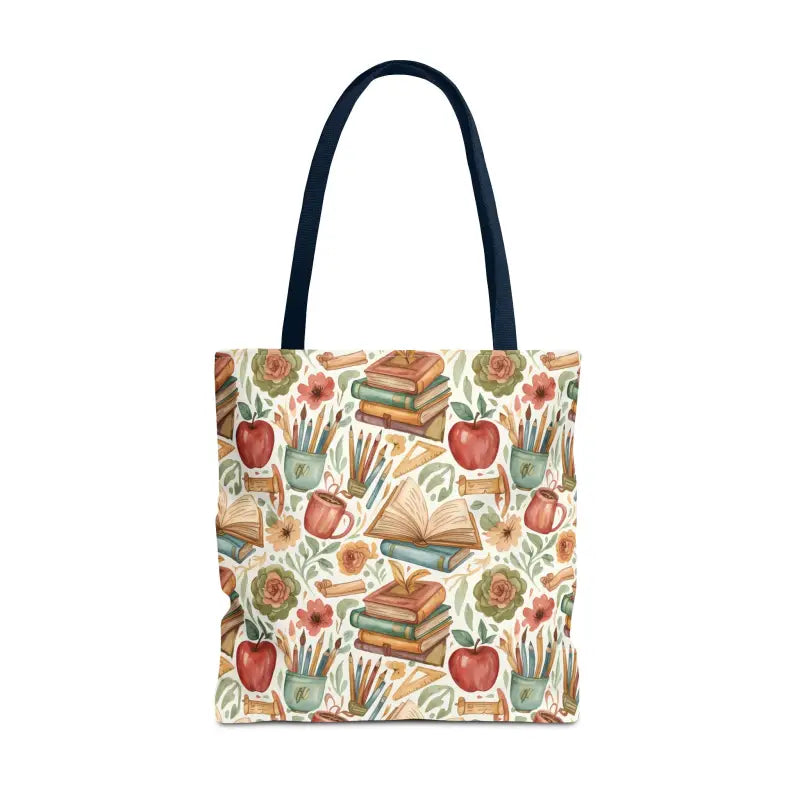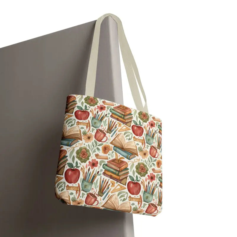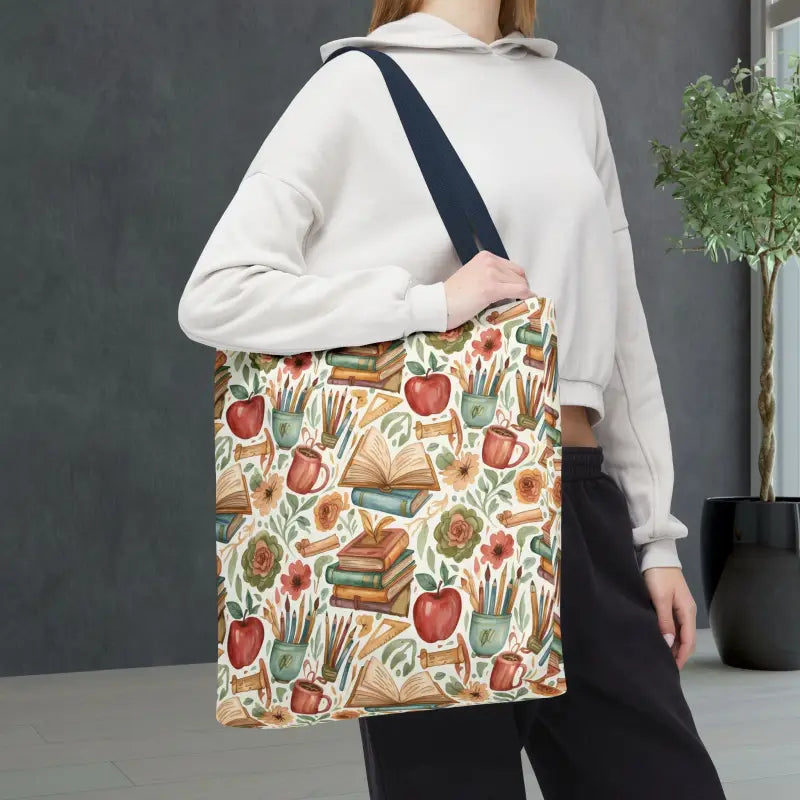 The watercolor tote design itself is absolutely stunning—soft autumn tones blend together in that dreamy, artistic way that makes you think of watercolor paintings drying on an easel. Open books with visible pages, neatly stacked novels in various sizes, adorable succulents in terracotta pots, fresh red apples, and steaming mugs create an all-over print that celebrates the bookish lifestyle without being overly literal or cutesy. This isn't just a bag with books on it—it's a whole mood, a visual representation of those slow, intentional moments when you prioritize stories and stillness over hustle and noise. When you carry this bookish watercolor tote, you're signaling to fellow book lovers that you're part of the club, that you understand the particular joy of finding the perfect reading spot and losing track of time in a narrative.