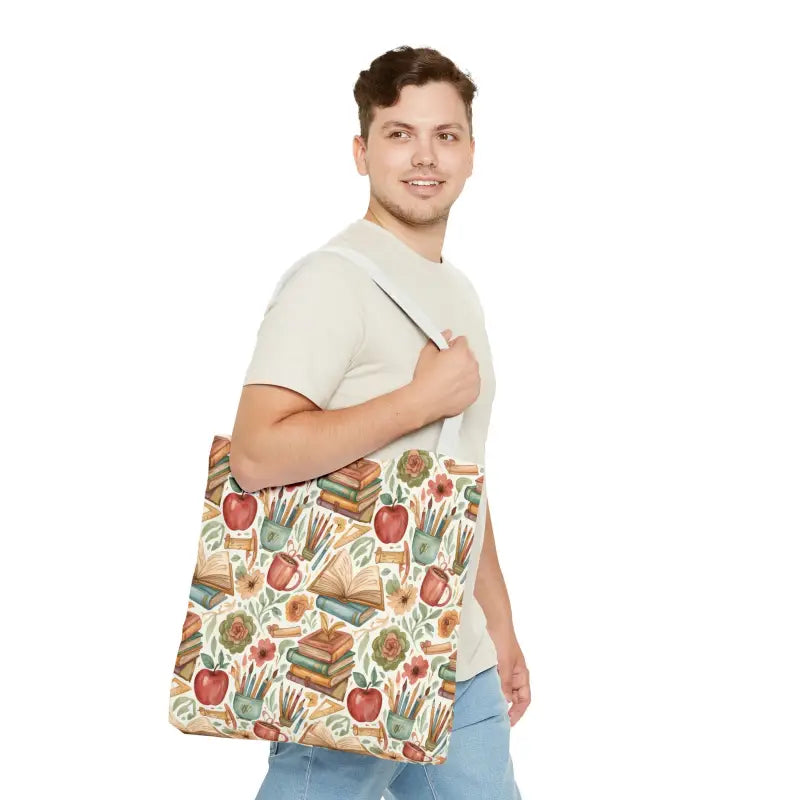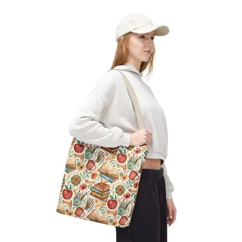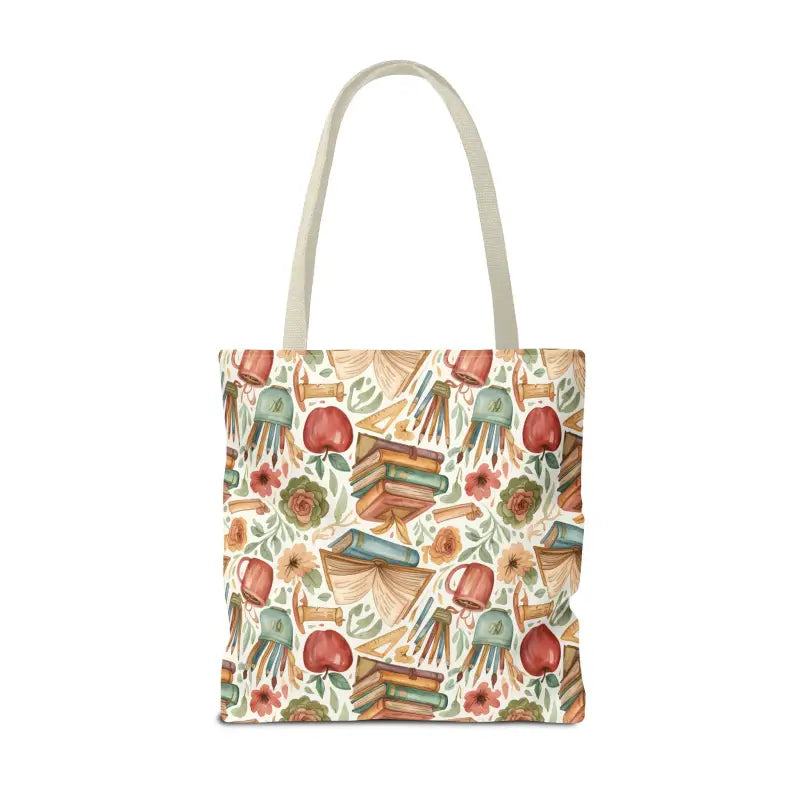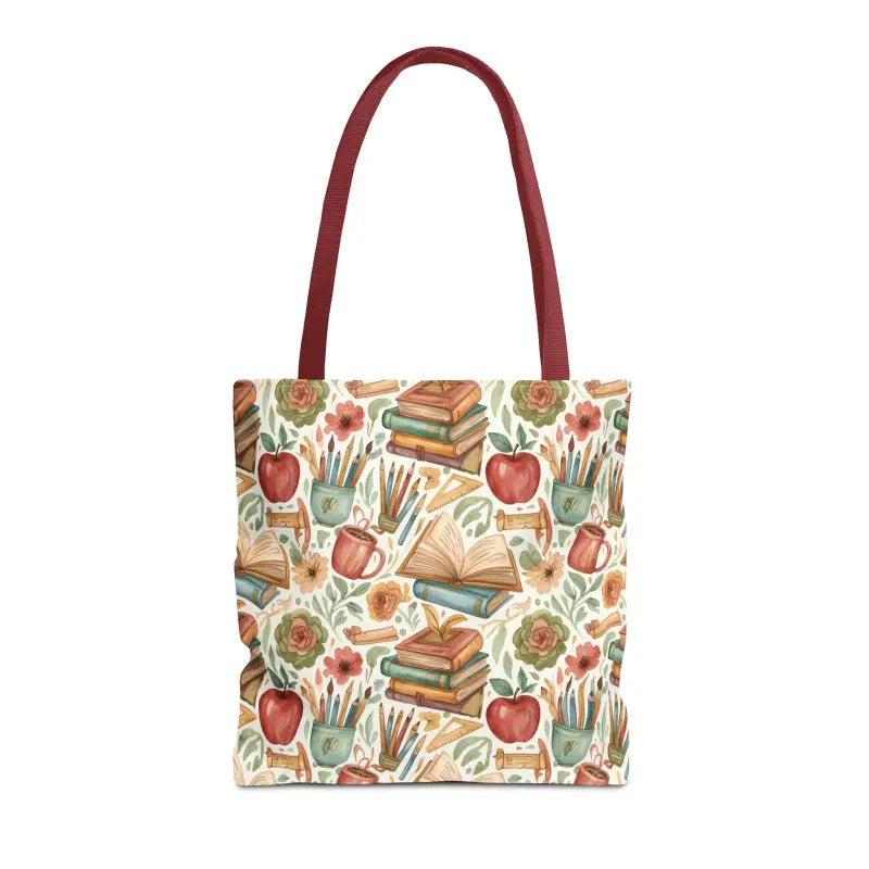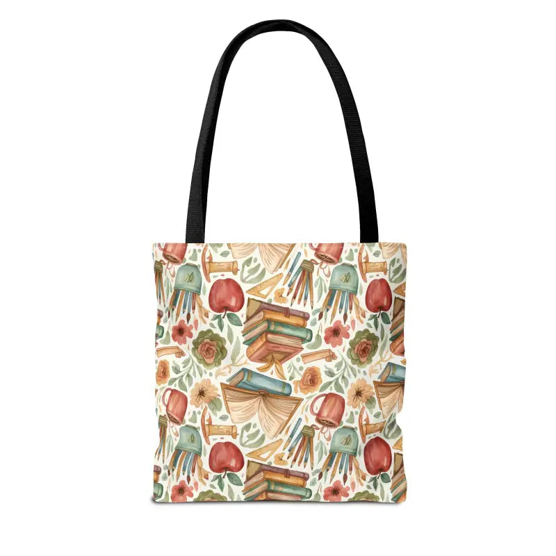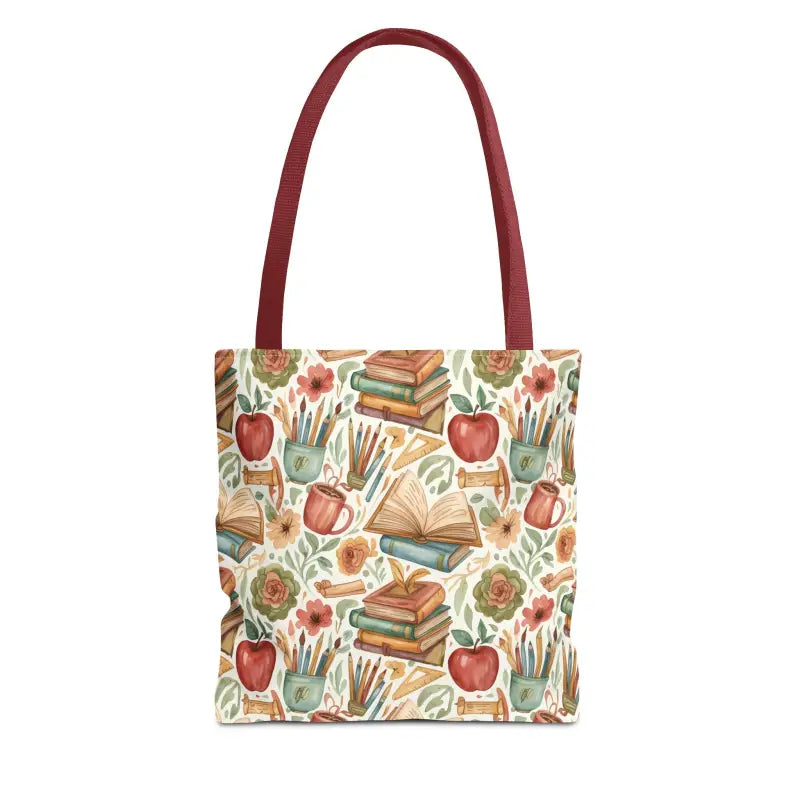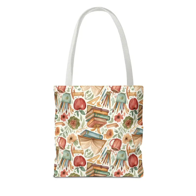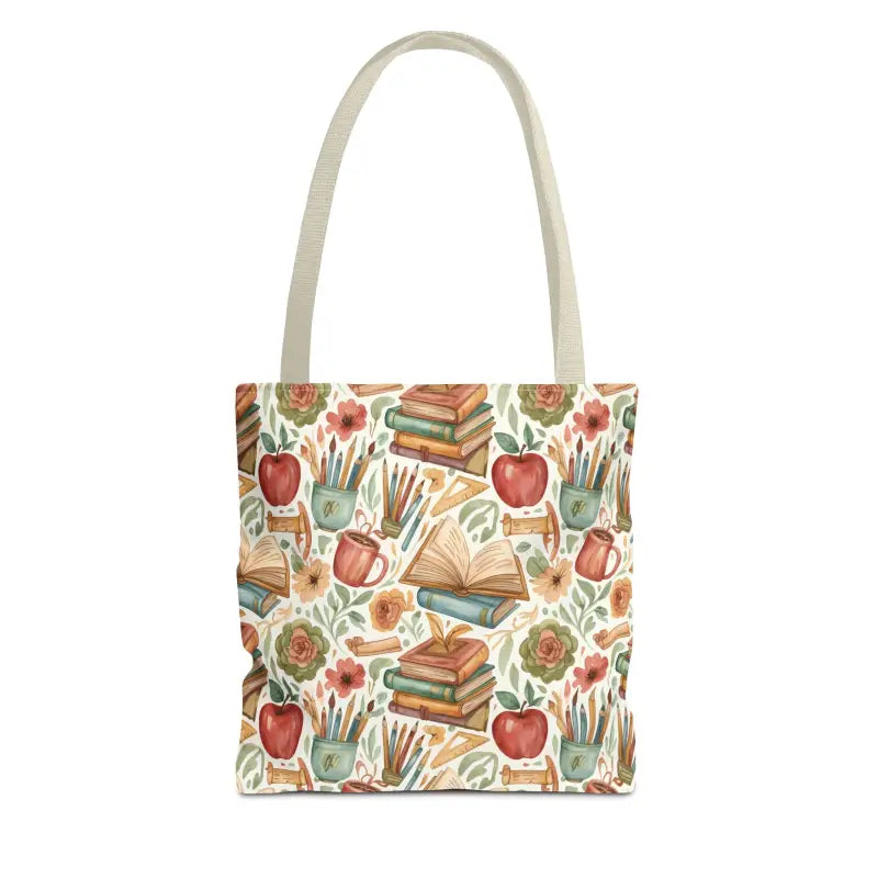The watercolor tote design itself is absolutely stunning—soft autumn tones blend together in that dreamy, artistic way that makes you think of watercolor paintings drying on an easel. Open books with visible pages, neatly stacked novels in various sizes, adorable succulents in terracotta pots, fresh red apples, and steaming mugs create an all-over print that celebrates the bookish lifestyle without being overly literal or cutesy. This isn't just a bag with books on it—it's a whole mood, a visual representation of those slow, intentional moments when you prioritize stories and stillness over hustle and noise. When you carry this bookish watercolor tote, you're signaling to fellow book lovers that you're part of the club, that you understand the particular joy of finding the perfect reading spot and losing track of time in a narrative.