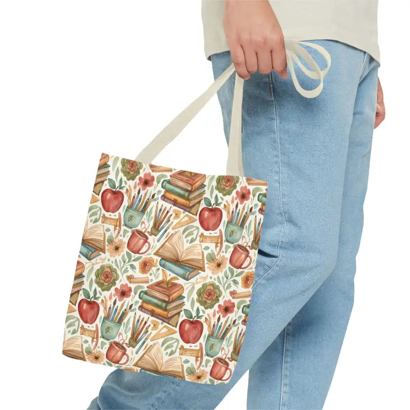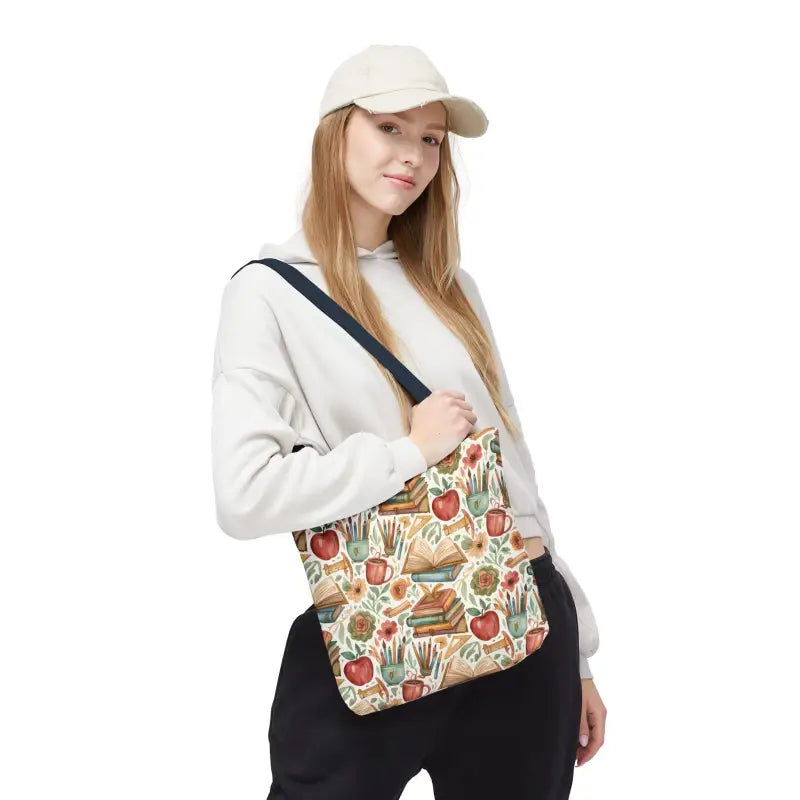The construction on this bookish watercolor beauty is seriously impressive. We're talking durable polyester that can handle the weight of your latest book haul without stretching or sagging, reinforced with boxed corners that give the bag structure and maximize interior space. The handles are wide enough to rest comfortably on your shoulder even when you've loaded up with hardcovers, a laptop, your water bottle, and all those random essentials that somehow multiply throughout the day. Inside, you'll find a laminated lining that keeps everything protected from unexpected rain showers and accidental coffee spills—because let's be real, bookish people and beverages go hand in hand. The fabric has just enough weight to feel substantial without being bulky, so it folds flat when you're not using it but stands up beautifully when filled.