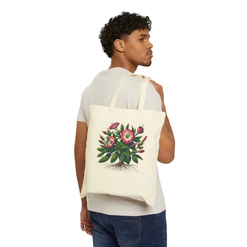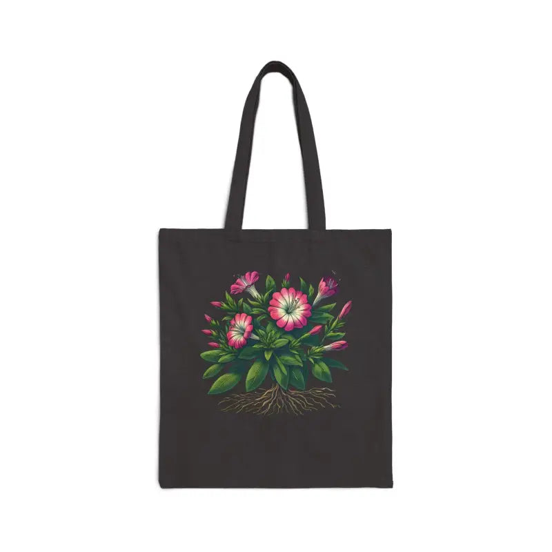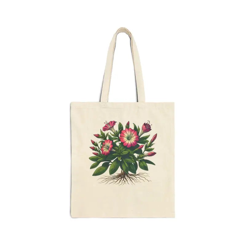 Pink Flower Cotton Canvas Tote Bag - Botanical Style - DipaliZ