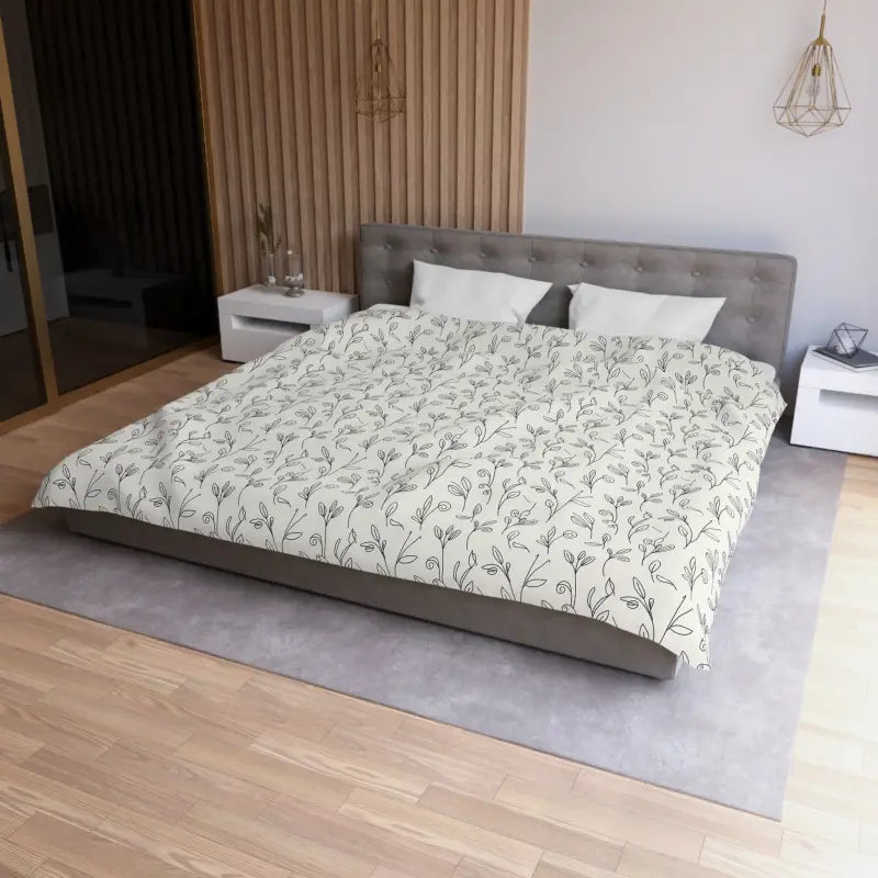 Transform your bedroom into a serene botanical retreat with this vine microfiber duvet cover that wraps you in nature-inspired comfort every single night. The delicate gray vine pattern dances across a soft cream background, creating an effortlessly elegant look that breathes life into any sleep space.