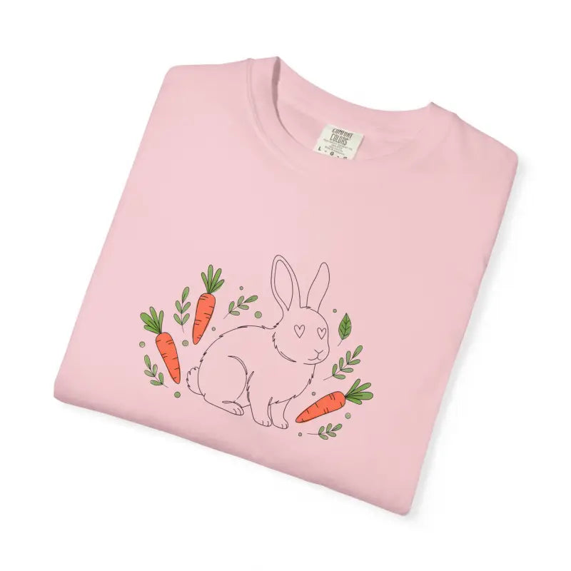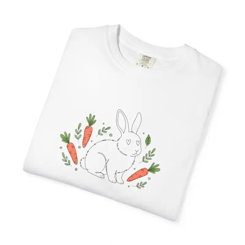 Picture yourself strolling through a sun-dappled farmers market, the soft cotton of this cute minimal Easter tee brushing against your skin like a gentle spring breeze. This minimal easter rabbit shirt features an absolutely charming hand-sketched bunny nestled among delicate carrots, creating that perfect balance of whimsy and sophistication that makes you smile every time you catch your reflection. The garment-dyed fabric has that lived-in softness right from the first wear, like it's been your favorite shirt for years, with colors that have a beautifully muted vintage quality that pairs effortlessly with literally everything in your closet. This carrots tee isn't just another graphic shirt—it's a mood, a vibe, a whole aesthetic wrapped up in premium cotton that feels like a warm hug from your favorite person.