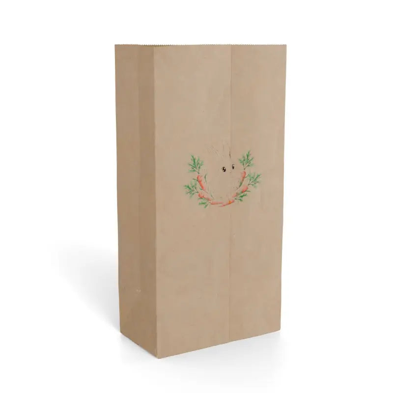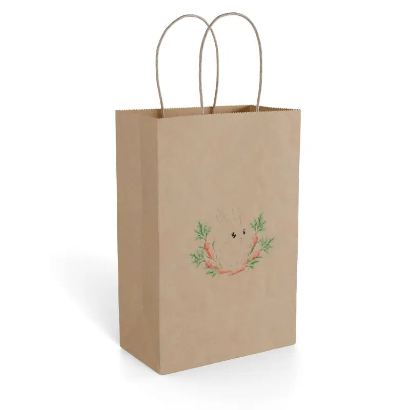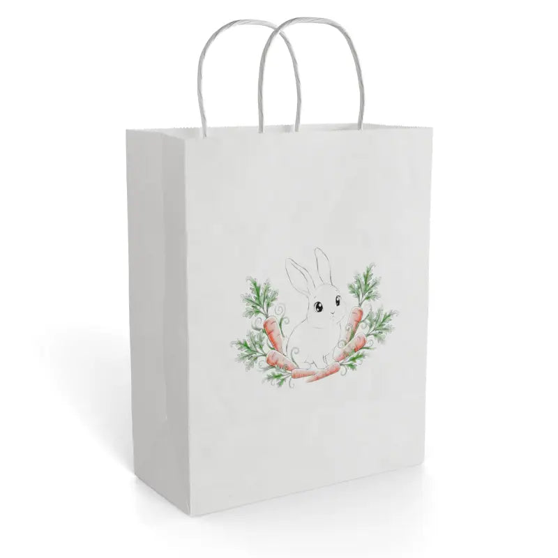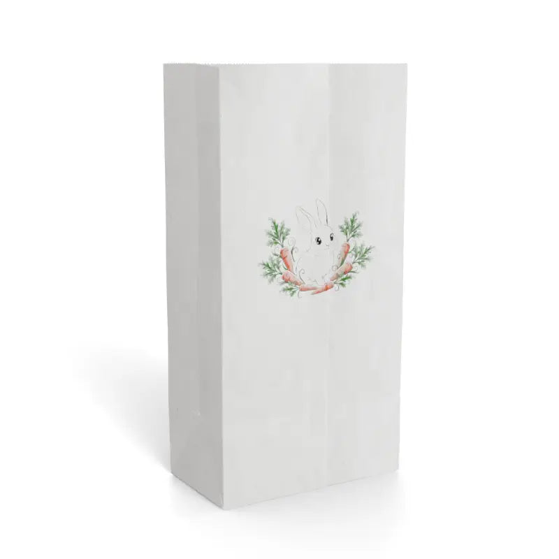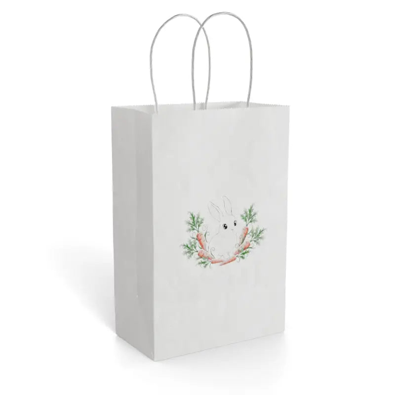 Hand-Drawn Bunny Rabbit Paper Gift Bag with Charming Carrot Wreath Design