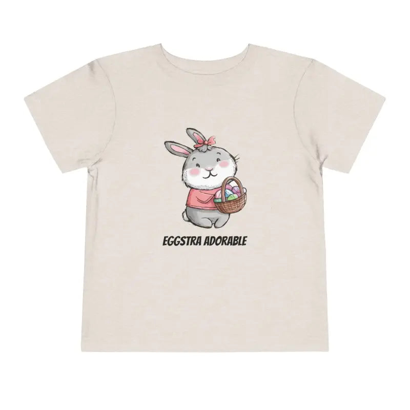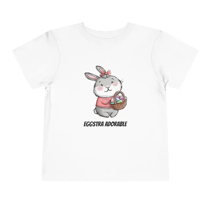 The charming design features an irresistibly cute Bunny Rabbit paired with the fun "Eggstra Adorable" slogan. Curated specially to celebrate the joyous energy of your little ones, the playful design makes this tee a standout piece in their closet.