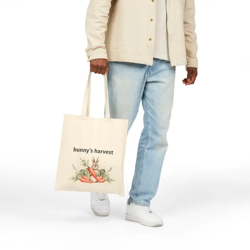 Picture this: you're heading out on a sun-drenched Saturday morning, canvas tote bag swinging from your shoulder, ready to gather fresh goodies from the farmers market or collect spring blooms from your favorite nursery. This harvest canvas tote brings that adorable bunny-and-carrot charm that makes every outing feel like a celebration of the season. The hand-drawn illustration captures a sweet rabbit surrounded by a bounty of fresh-picked carrots, creating an instant smile-inducing vibe that screams springtime joy. Whether you're an Easter enthusiast, a garden lover, or just someone who appreciates cute spring easter designs that don't sacrifice practicality, this bag becomes your go-to for everything from grocery runs to beach days. The natural cotton canvas feels substantial in your hands without weighing you down, and those reinforced handles distribute weight beautifully even when you've gone a little overboard at the produce stand.