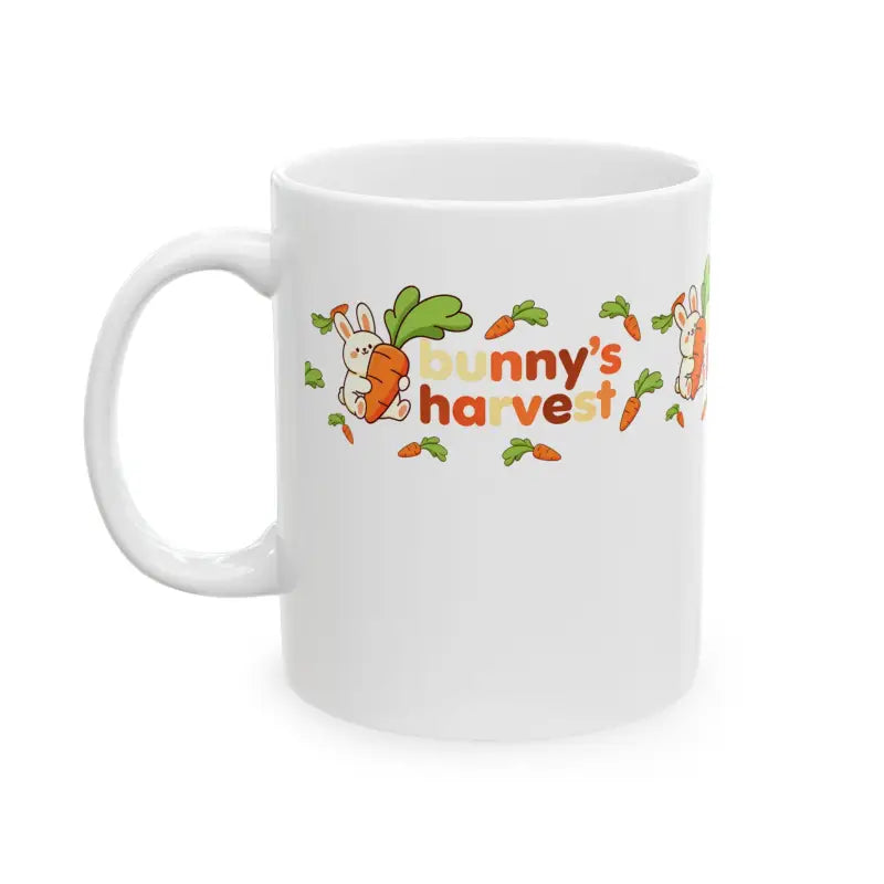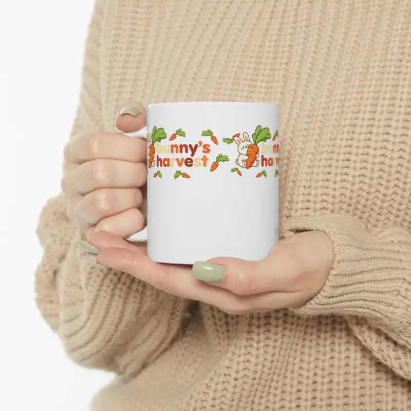 Get ready to fall head over heels for the most adorable way to start your day! Picture this: you're curled up on your favorite chair as golden morning light streams through the window, and wrapped between your hands is this absolutely delightful harvest ceramic mug featuring the sweetest bunny you've ever seen. This cute Easter bunny coffee cup brings instant joy to every sip with its charming illustration of a fluffy bunny hugging an oversized carrot, surrounded by a cheerful scatter of tiny carrots and sunshine-bright lettering spelling out bunny's harvest. The glossy ceramic surface catches the light beautifully while keeping your coffee, tea, or hot chocolate at just the right temperature, and that smooth C-handle feels like it was custom-made for your grip. Whether you're a bunny enthusiast, spring lover, or just someone who believes breakfast should come with a side of whimsy, this carrot coffee cup transforms ordinary moments into something special.