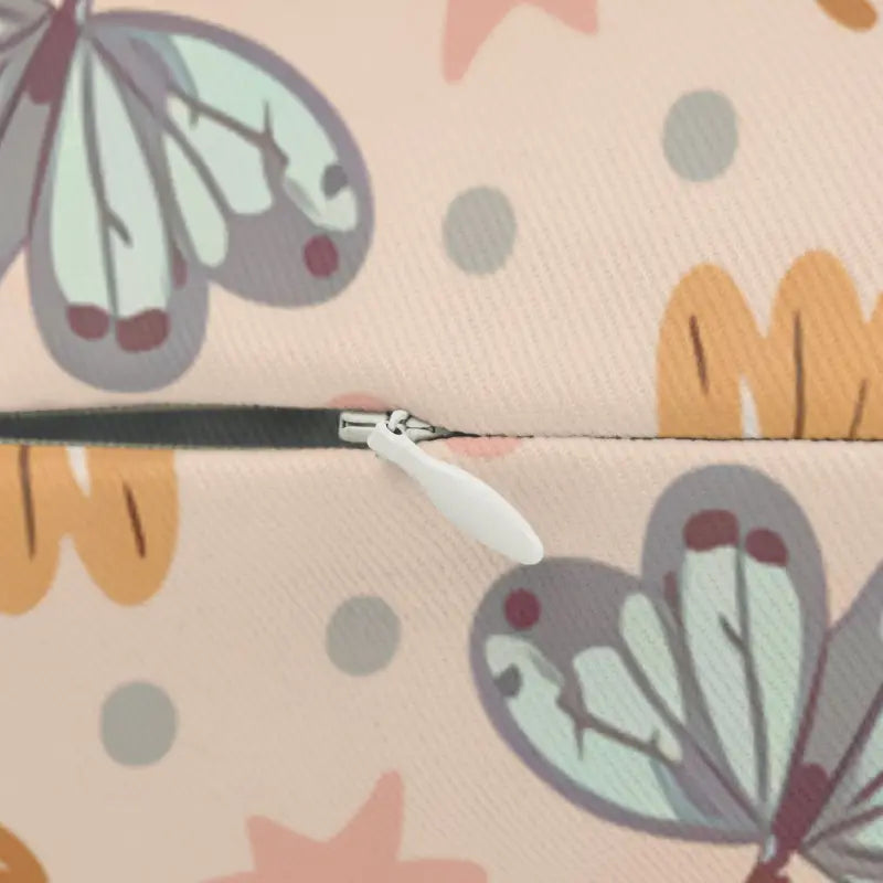 Butterflies and flowers, Spun Polyester Lumbar Pillow. Add this beautiful spun-polyester lumbar pillow to your home decor pieces today. It comes with a stuffing pillow included. The casing is made of a spun polyester fabric that is inherently mildew and water-resistant. You can place your design on both sides or have a different design on each side. It has a hidden beige zipper to maintain a finished and stylish look.