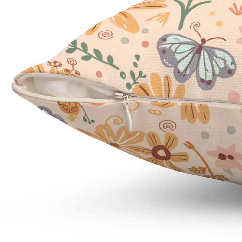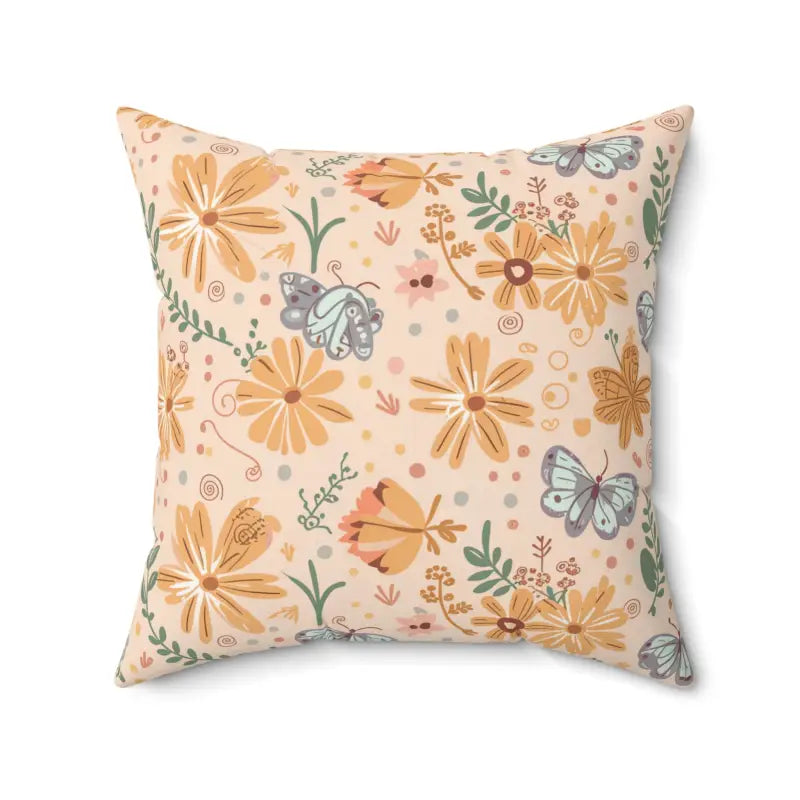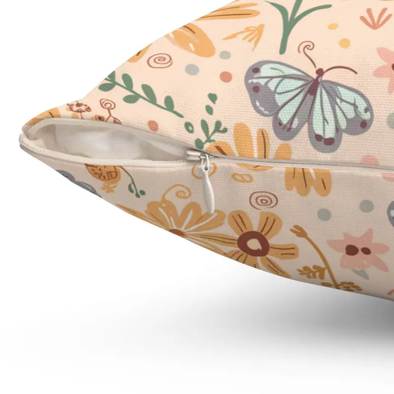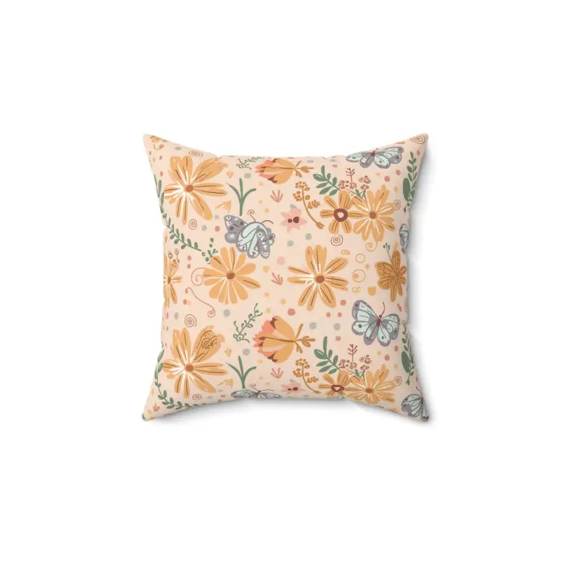 Don't let your space go unnoticed! Elevate your room with our stunning Butterflies and Flowers Spun Polyester Square Pillow—a dazzling fusion of art and comfort. Crafted to perfection, these pillows aren't just functional—they're the ultimate statement pieces. Think of them as your secret weapon for crafting a uniquely personal and inviting environment.