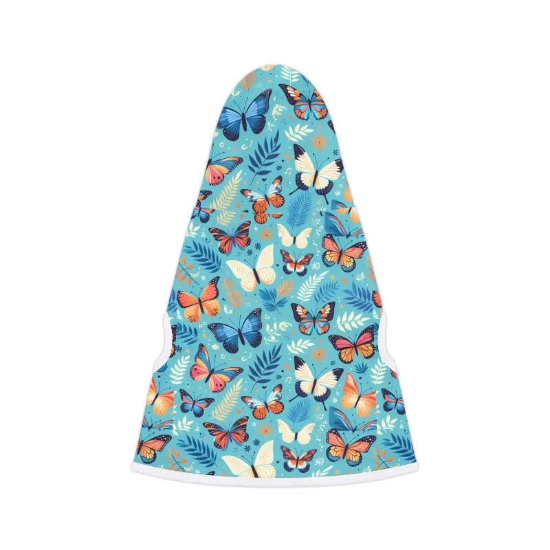 Unleash your cat's inner fashionista with the Butterfly Pattern Cat Hoodie in White Rib, the ultimate blend of comfort and style for your feline friend. This must-have pet apparel isn't just a hoodie; it's a statement piece that transforms every sidewalk strut into a runway. Designed specifically for the ever-discerning fashion-forward kitty, this hoodie promises to deliver not just a standout look but also coziness and durability.