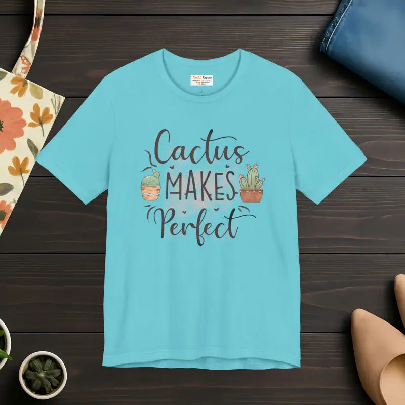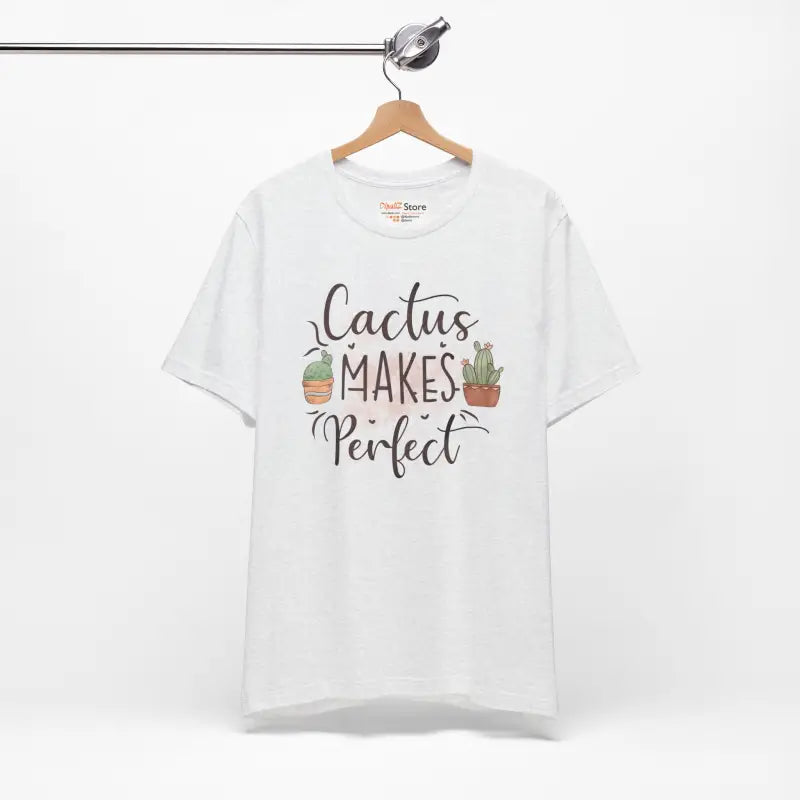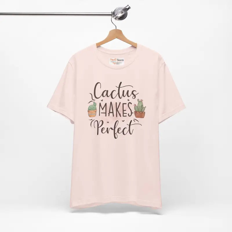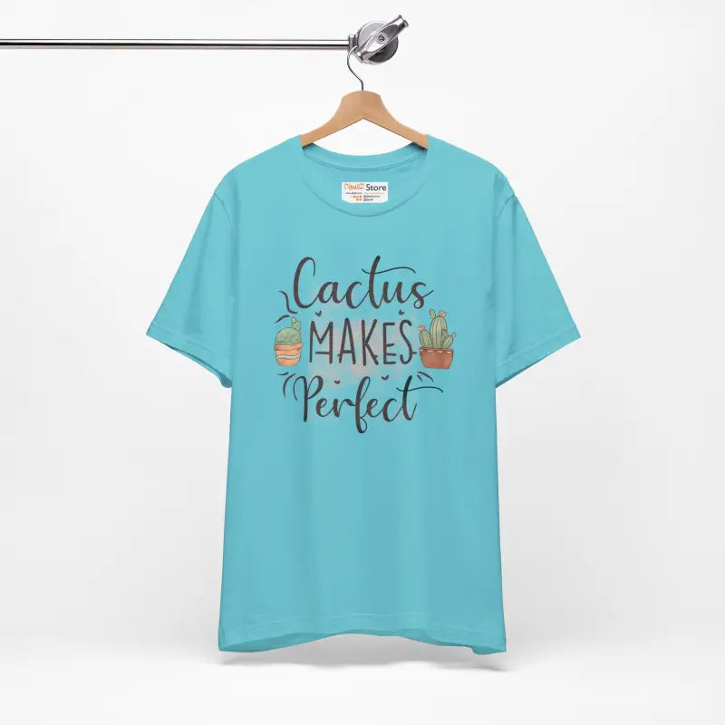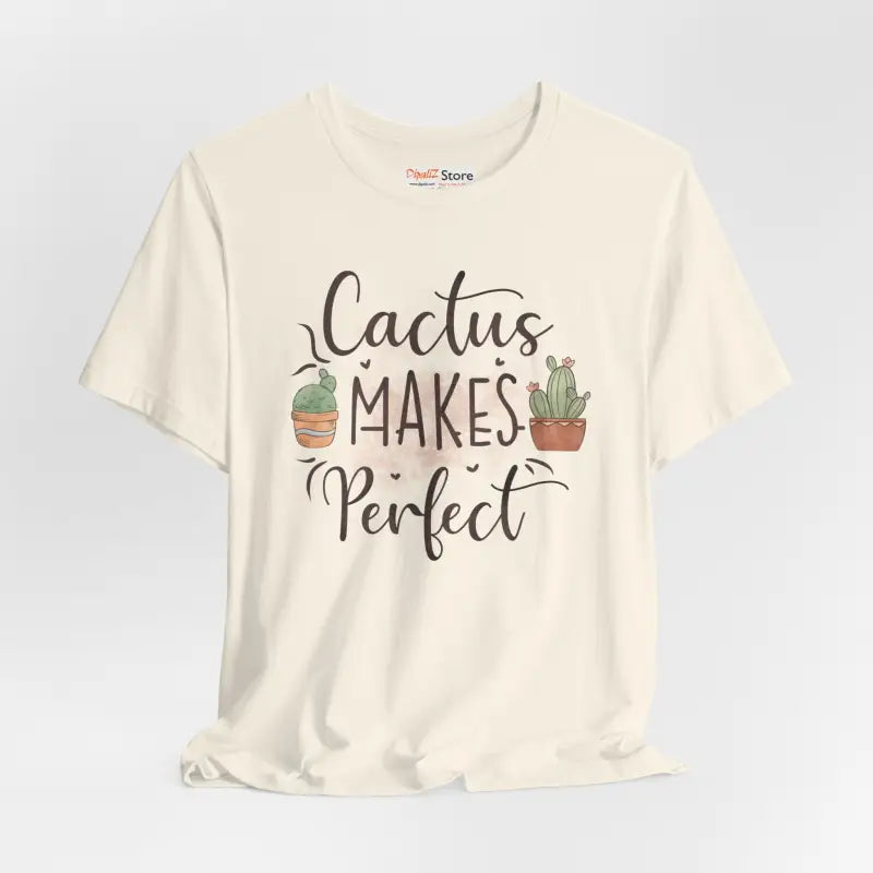 Cactus makes perfect, Unisex Jersey Short Sleeve Tee. This classic unisex jersey short sleeve tee fits like a well-loved favorite. Soft cotton and quality print make users fall in love with it over and over again. These t-shirts have-ribbed knit collars to bolster shaping. The shoulders are tapered for a better fit over time. Dual side seams hold the garment's shape for longer.