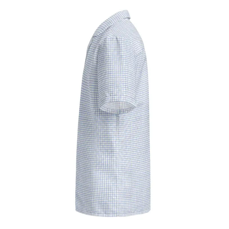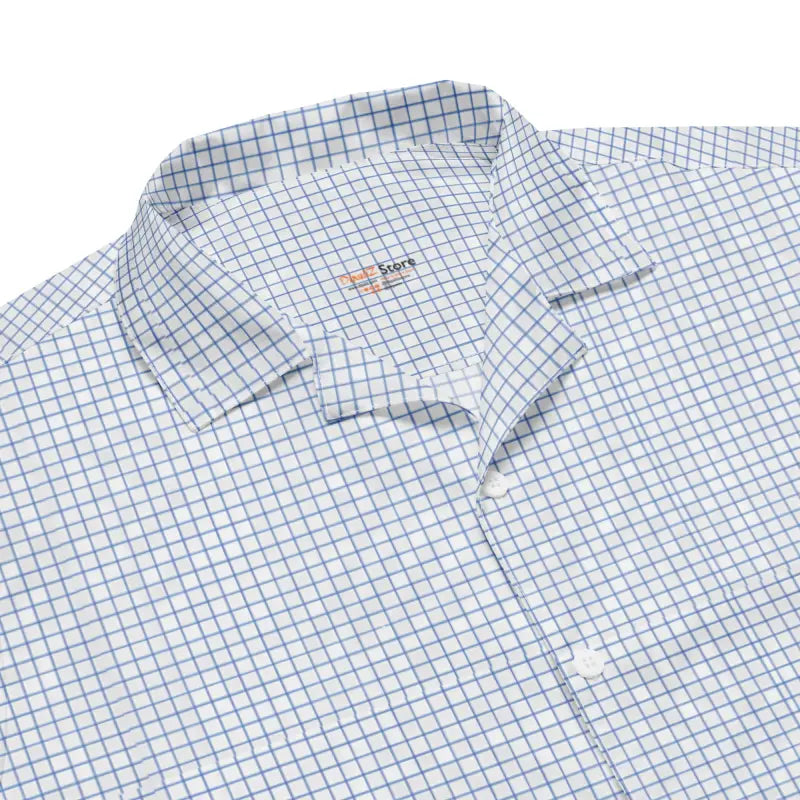 Feel the ocean breeze every time you slip into this capri blue graph check unisex button shirt. Light as air and cool to the touch, it brings effortless summer energy wherever you go.