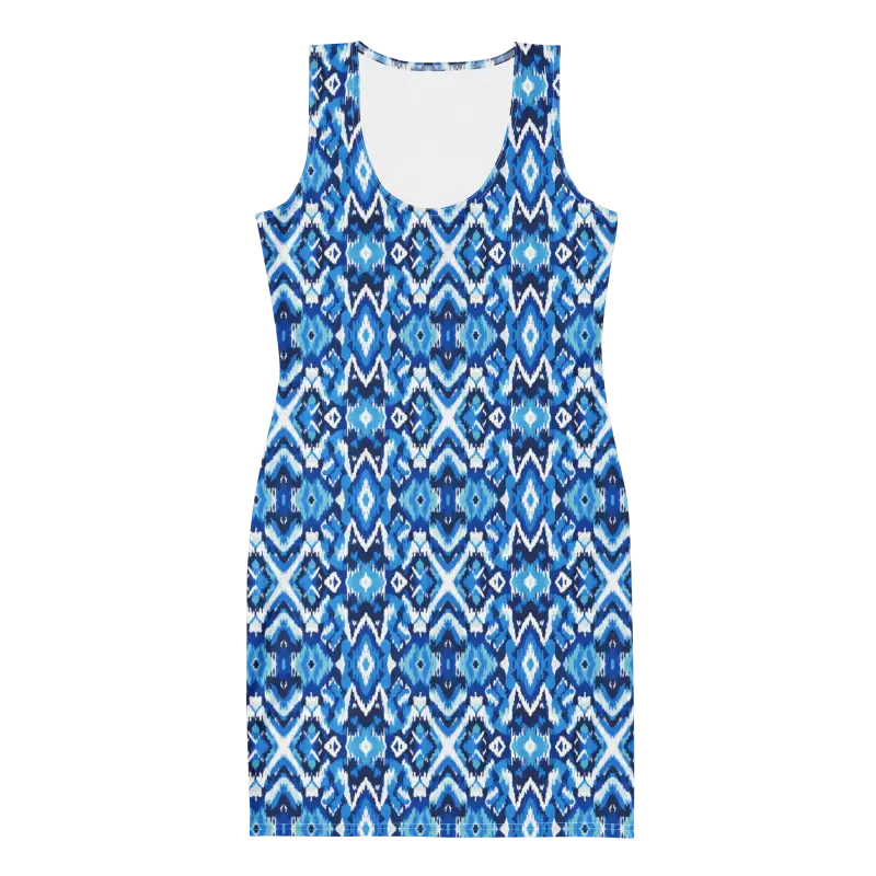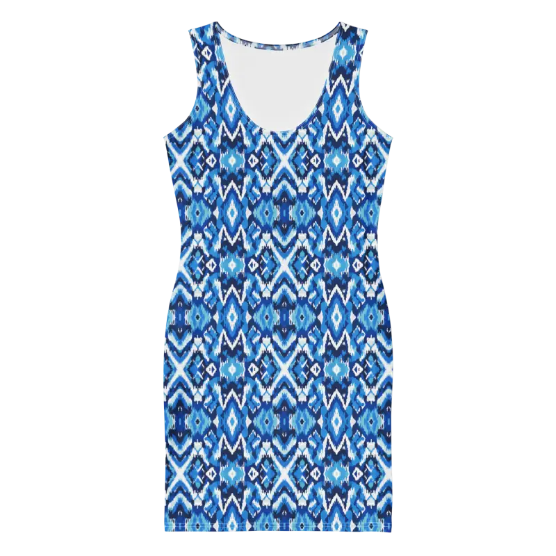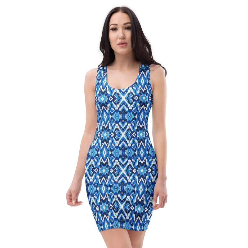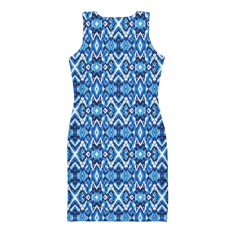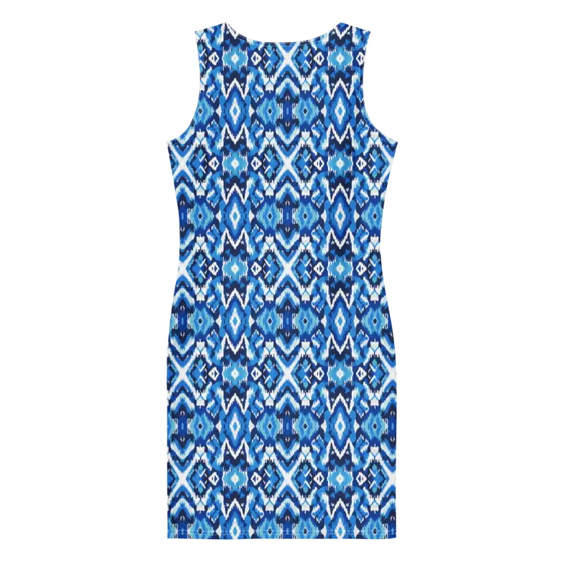 Capri Blue Ikat Bodycon Dress – Recycled Elegance