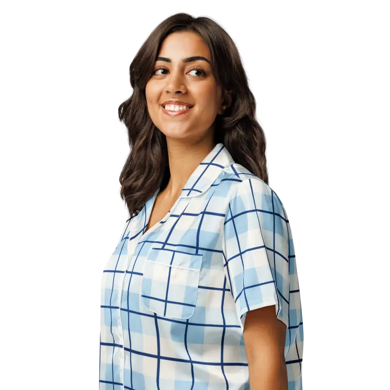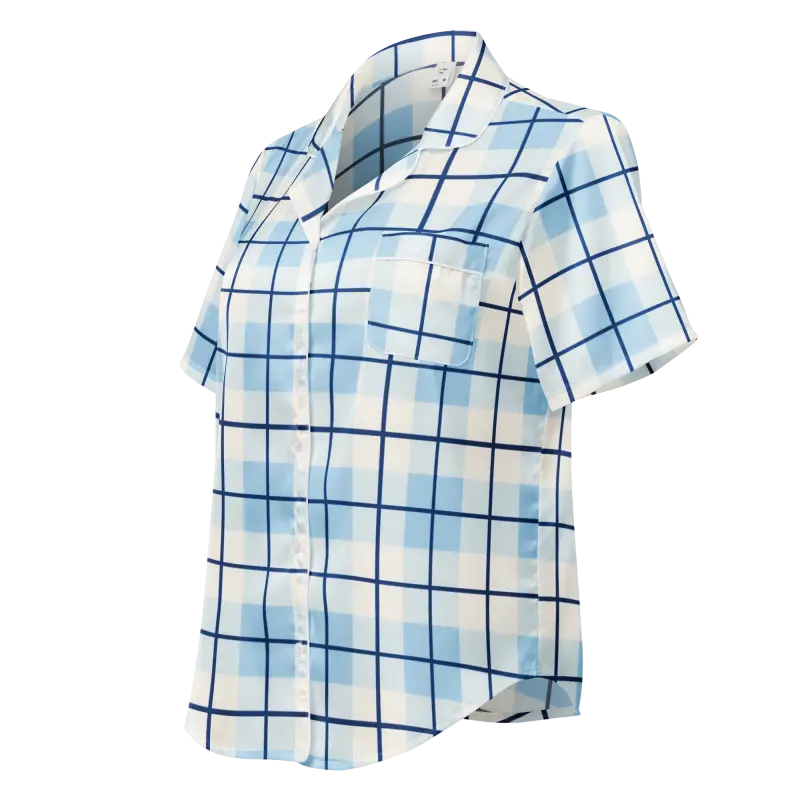 Slip into the dreamy comfort of the Capri Blue Madras short sleeve pajama top—soft, silky, and effortlessly chic with a blue madras pattern that feels like a coastal breeze on your skin.