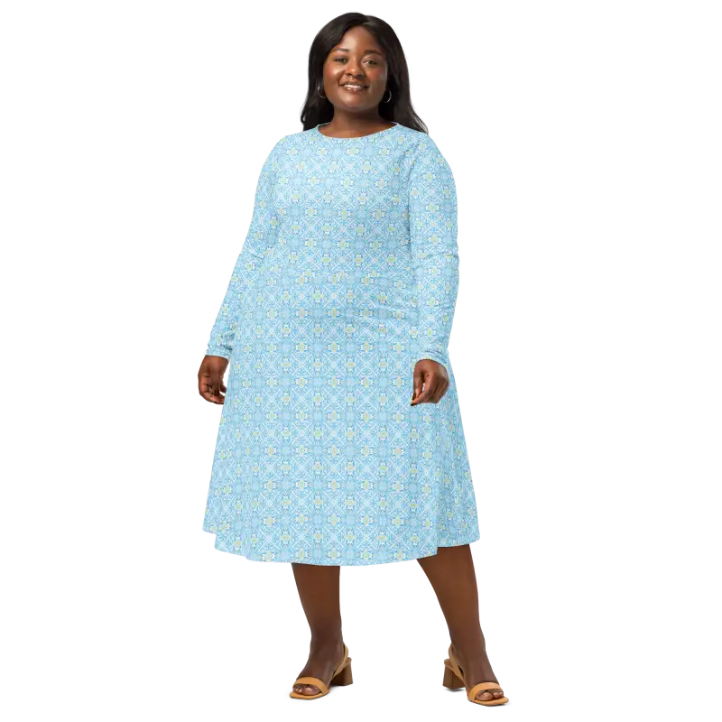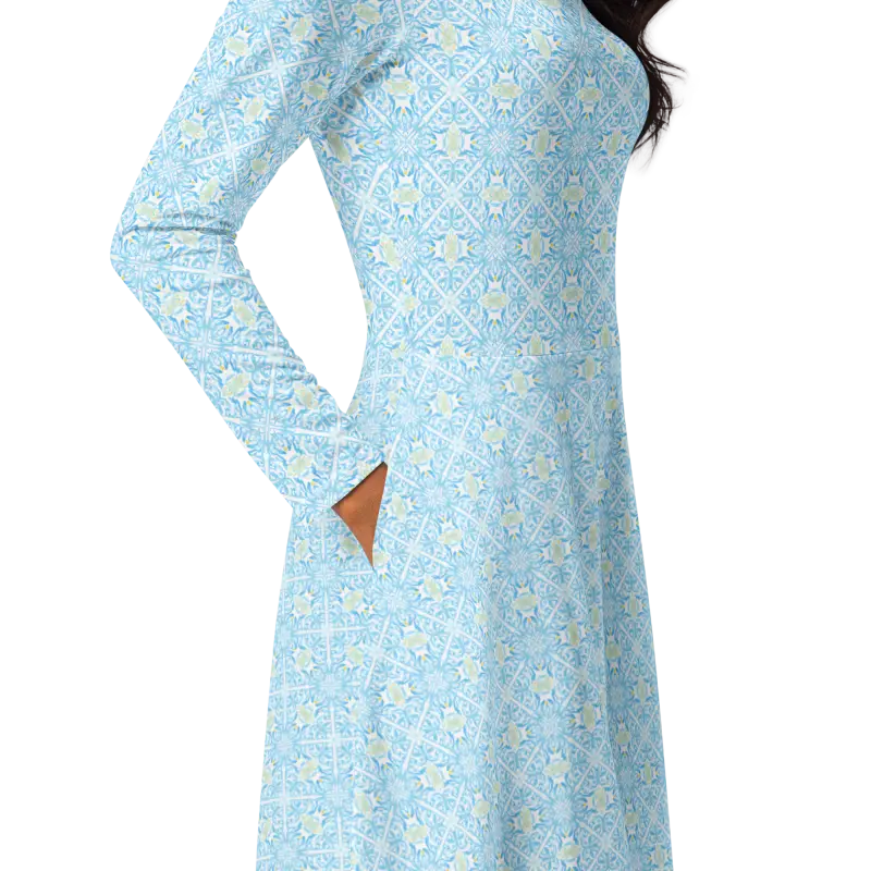 Step into effortless elegance with the vibrant capri blue medallion pattern that catches the light and turns heads. This print long sleeve beauty flows with every move, wrapping you in comfort and confidence all day.