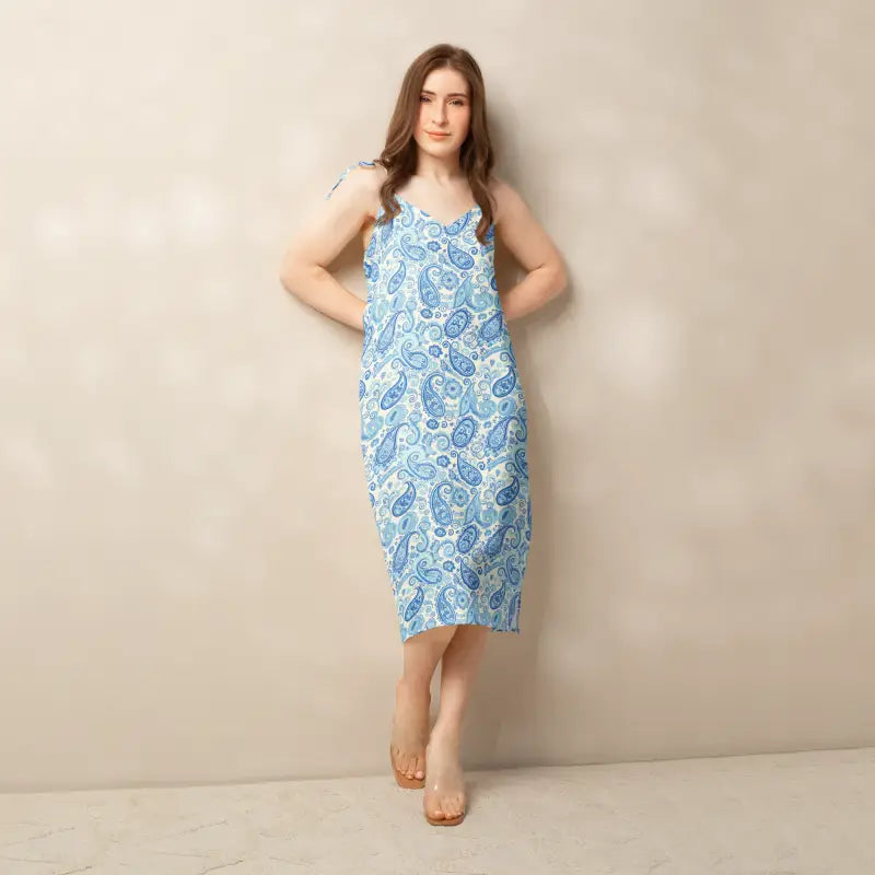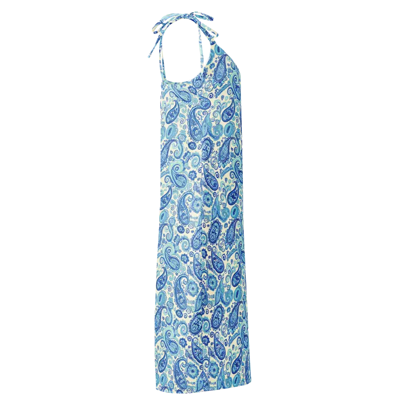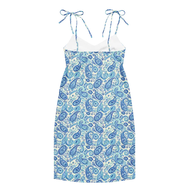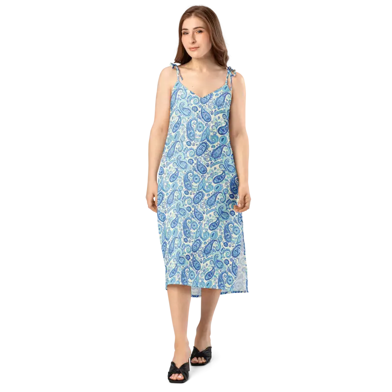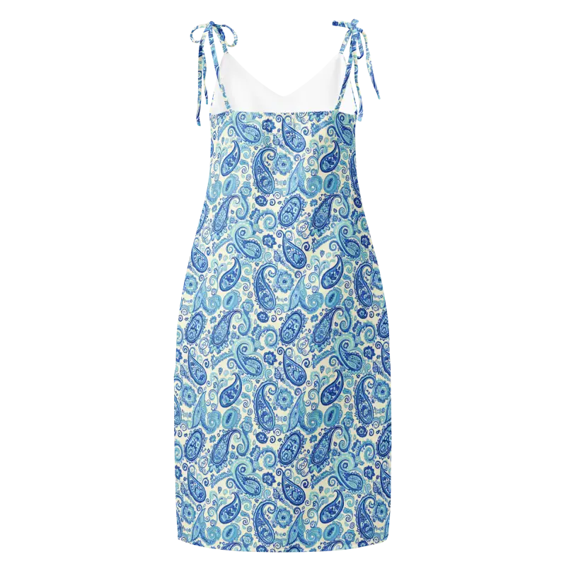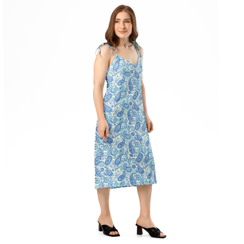Capri Blue Paisley Midi Dress with Flirty Tie Straps