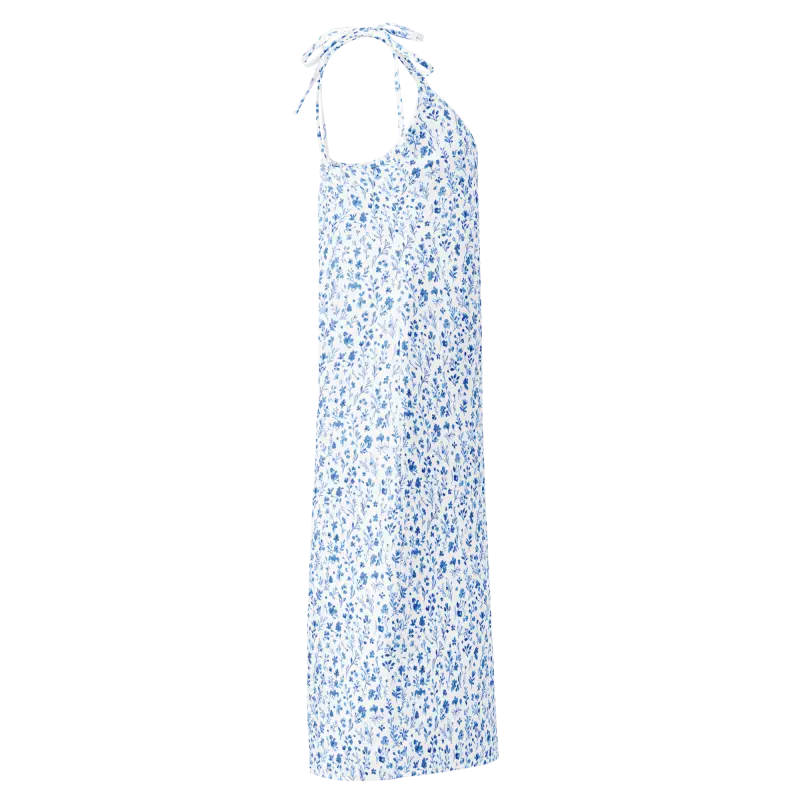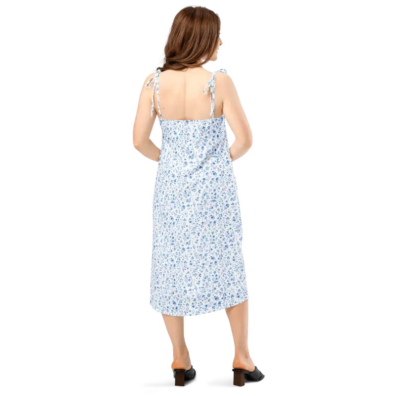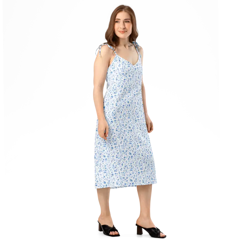 Capri Blue Small Floral Midi Dress with Breezy Tie-Strap Charm