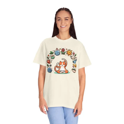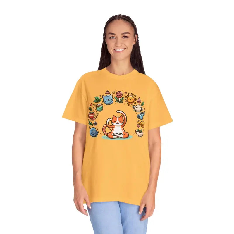 Show off your vibrant energy and love for feline friends and yoga with this unisex garment-dyed t-shirt, made to capture smiles and turn heads wherever you go. Say goodbye to bland, ordinary outfits and embrace the ultimate in women’s fashion with a true statement piece that instantly boosts your mood and spreads good vibes. Whether you’re catching coffee, powering through a yoga class, or simply lounging at home, you’ll enjoy unbeatable comfort and an eye-catching look that matches your passion for fun, feel-good style.