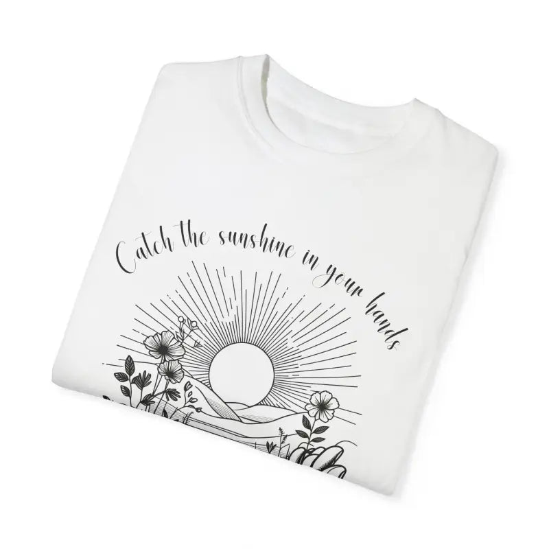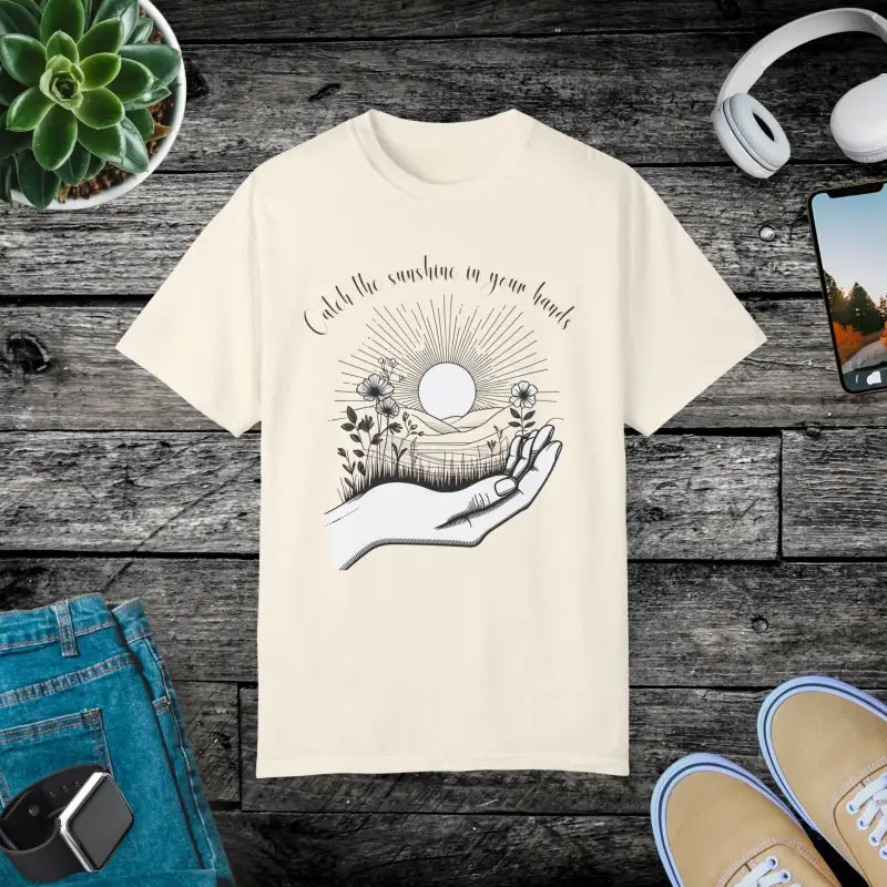 Get ready to step into a new level of everyday cool with the Catch the Sunshine Unisex Garment-Dyed T-Shirt. This unisex garment-dyed t-shirt is designed with a hand-crafted graphic and an irresistible laid-back vibe that instantly elevates any casual or semi-formal look. Enjoy top-notch comfort and unbeatable durability made possible by the use of soft, 100% ring-spun US cotton that ensures breathability and a relaxed fit for every body type. Whether you're chilling at home, enjoying a weekend hangout, or gearing up for a day of adventure, this garment-dyed t-shirt stands out as your ultimate go-to style choice.