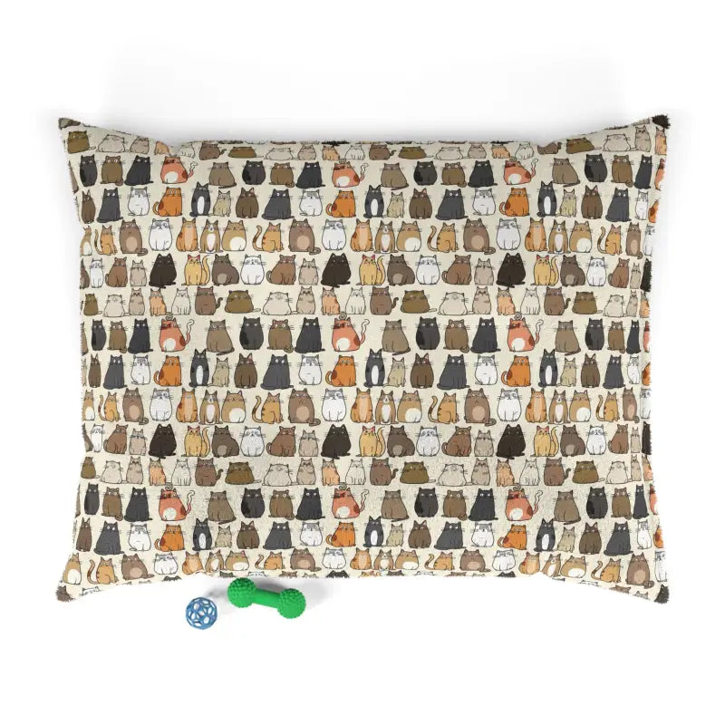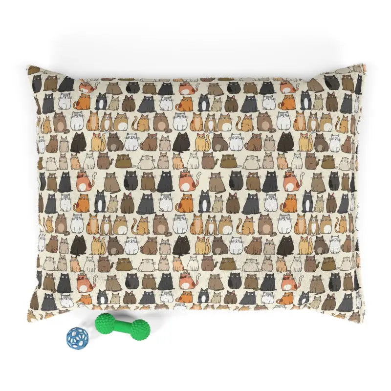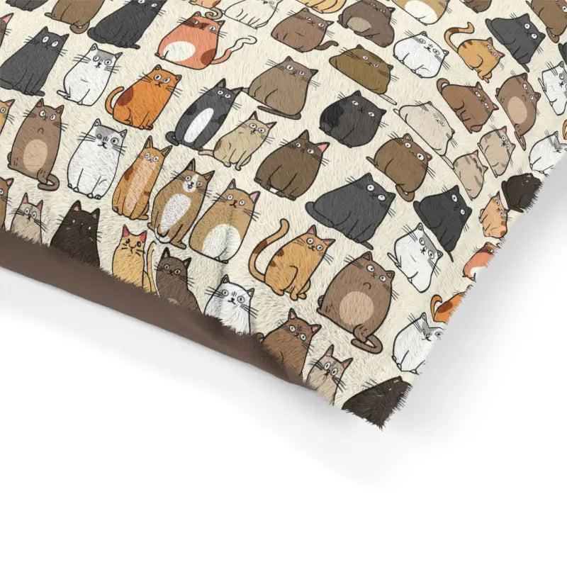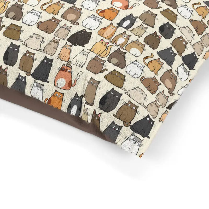 Cats pattern Polyester and Cotton Pet Bed. Elevate your furry friend's comfort with our premium Pet Bed – the perfect solution to keep your canine companion off your furniture! This cozy haven features a luxuriously soft fleece exterior, adorned with a charming print on one side. The sophisticated dark brown zippered back, coupled with a plump pillow insert, ensures a snug retreat for your vigilant home security system. Crafted with care, the pet bed boasts a 100% polyester print area on the exterior and a smooth 100% cotton underside. The convenient zipper closure and shape-retaining insert make this bed a practical and stylish addition to your indoor space. Treat your loyal companion to a cozy nest right at your feet, where they can relax and unwind in style.
