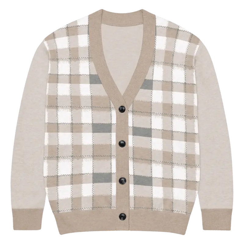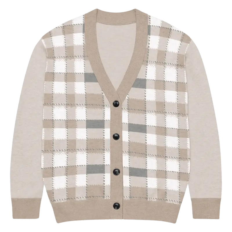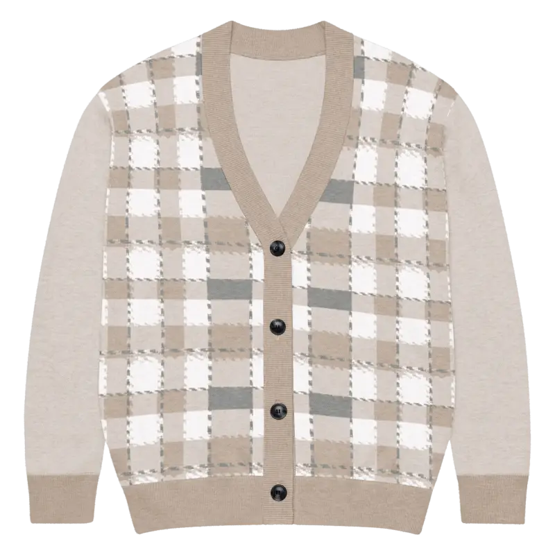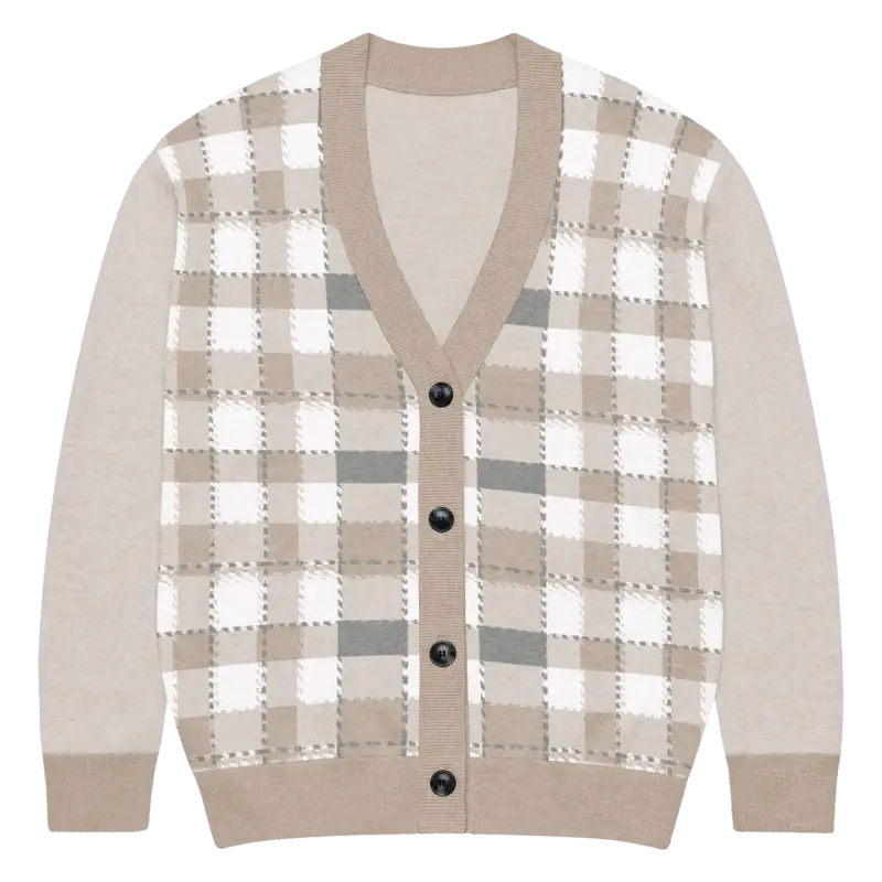 Check Plaid Knitted Cardigan - Cozy Layering Essential - DipaliZ