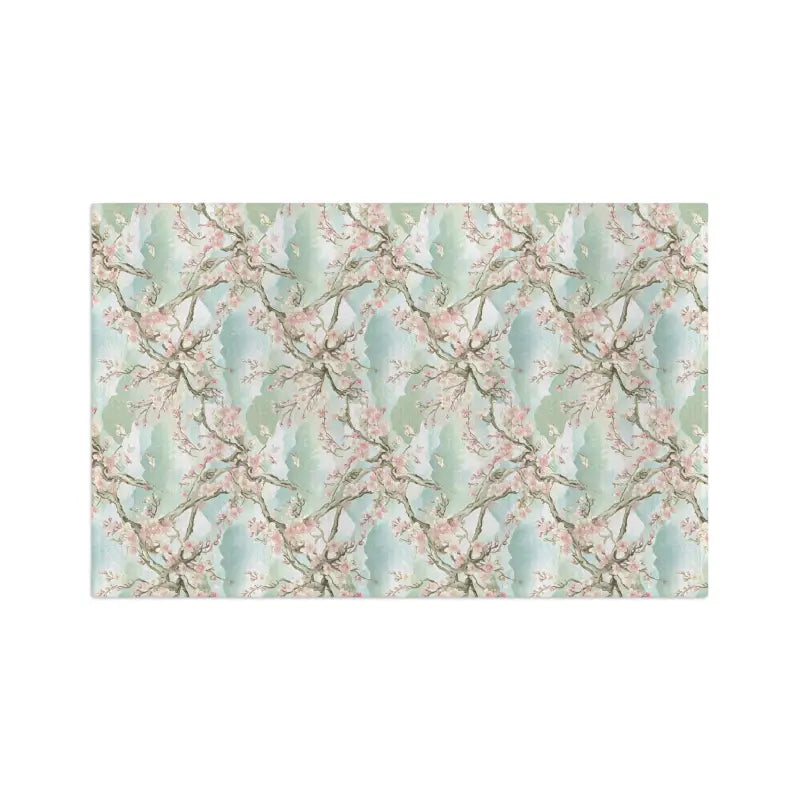 Soft pastel washes swirl around hand-painted cherry blossom branches, creating an artful repeat pattern that brightens every corner. Rounded edges soften the look while the nature-inspired theme brings a tranquil garden vibe straight to your countertop.