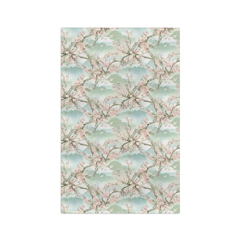 Delicate cherry blossom sprays on a soft mint backdrop evoke an open-air orchard in bloom with soothing pastel contrasts.