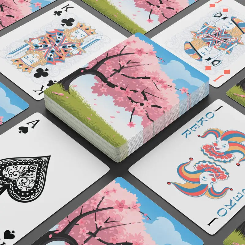 Elevate your game nights with the enchanting Cherry Blossom Tree Poker Playing Cards. These aren't just playing cards—it's a blend of art, tradition, and fun, all shuffled into one impressive deck! Designed for those who appreciate the fusion of culture and entertainment, this stunning set of poker cards will transport you to a world where every deal feels like a cherry blossom festival.