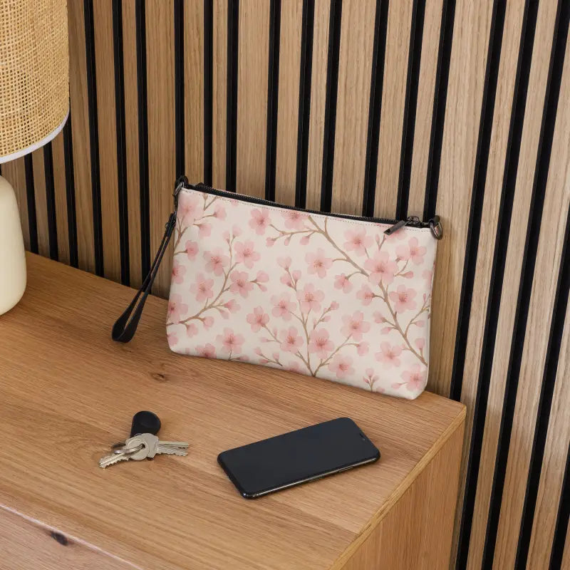 Step into a sunlit street market with our Cherry Blossoms Crossbody Bag that feels like spring in your hands. This faux leather crossbody bag lets you glide through busy days and spontaneous nights, petals dancing on the sleek fabric as you carry all your must-haves.