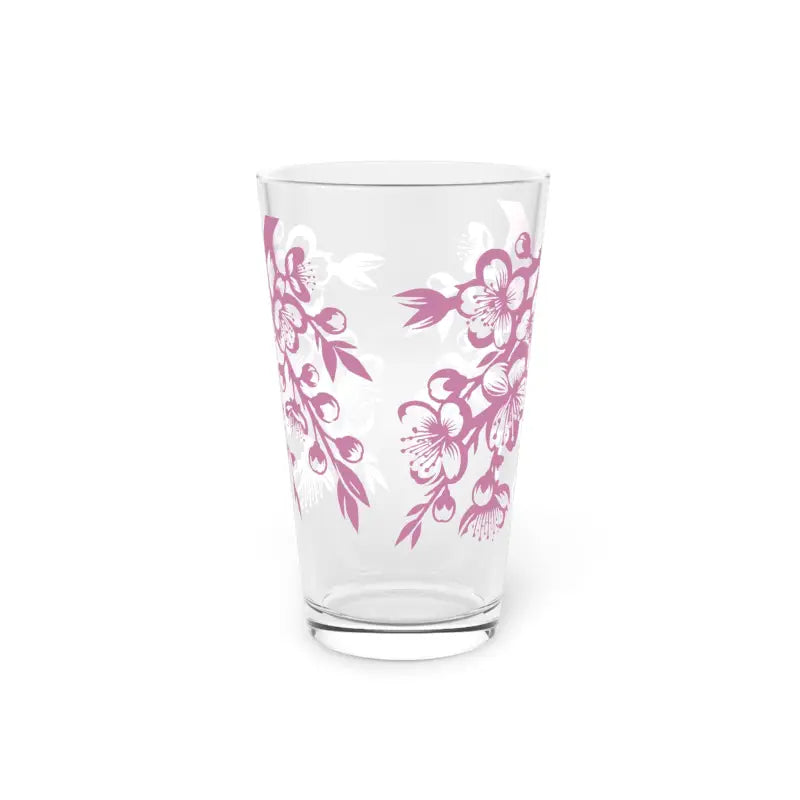 Print: Vibrant cherry blossoms wrap gracefully around the pint glass, with delicate pink flowers adding a splash of color and elegance.