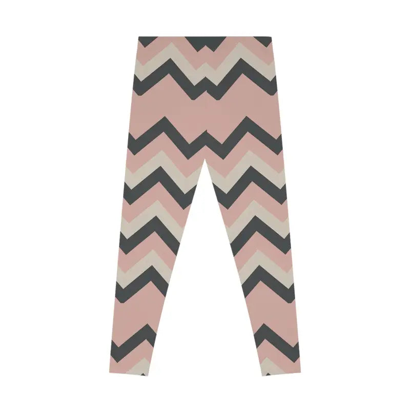 Picture yourself stepping into your morning routine with leggings that feel like a second skin while making a statement that's anything but basic. These chevron print leggings wrap your legs in a gorgeous dance of dusty rose, warm beige, and deep charcoal that catches eyes without shouting for attention. The moment you pull them on, you'll feel that perfect balance of snug support and breathable stretch that makes you forget you're even wearing pants. Whether you're powering through your day or stealing a moment of calm, this neutral zigzag pattern moves with your body like it was custom-made just for you. The seamless all-over design creates a visual flow that elongates your silhouette while keeping things playful and modern.