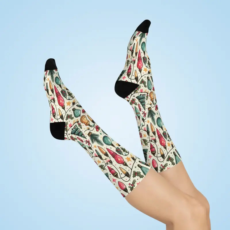 • Eye-Catching Design: The twinkling lights and bold colors add a fun, festive touch to any outfit, ensuring your crew socks make a statement.