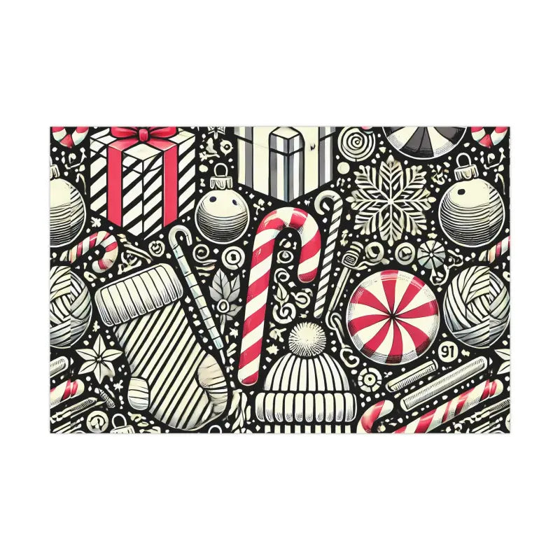 Print: Bold and joyful, the design features a classic red and white candy cane christmas pattern that instantly brings cozy holiday vibes to any package.