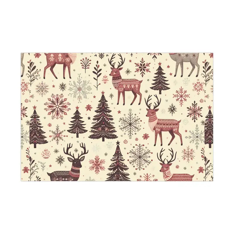 Print: Cheerful reindeers prance across a vibrant holiday backdrop, filling your gifts with Christmas spirit and excitement.