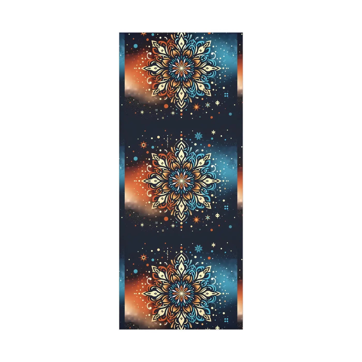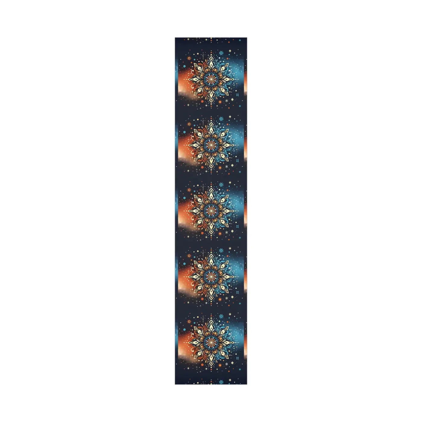 Print: Classic Christmas snowflake pattern in bright, joyful colors, designed to embody holiday spirit.
