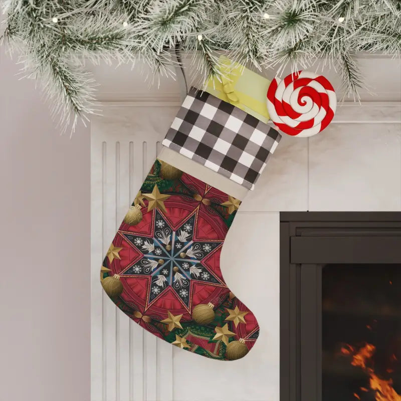 This festive treasure boasts a stylish linen boot adorned with a classy polyester plaid design on the cuff, making it a standout piece in best eco-friendly home decor. Tailor your stocking's look to align perfectly with your decor style by selecting from two striking cuff colors: vibrant red/black or classic white/black. Each stocking features a one-sided print and a convenient hanging loop, ensuring your stocking hangs perfectly to showcase its handcrafted allure.