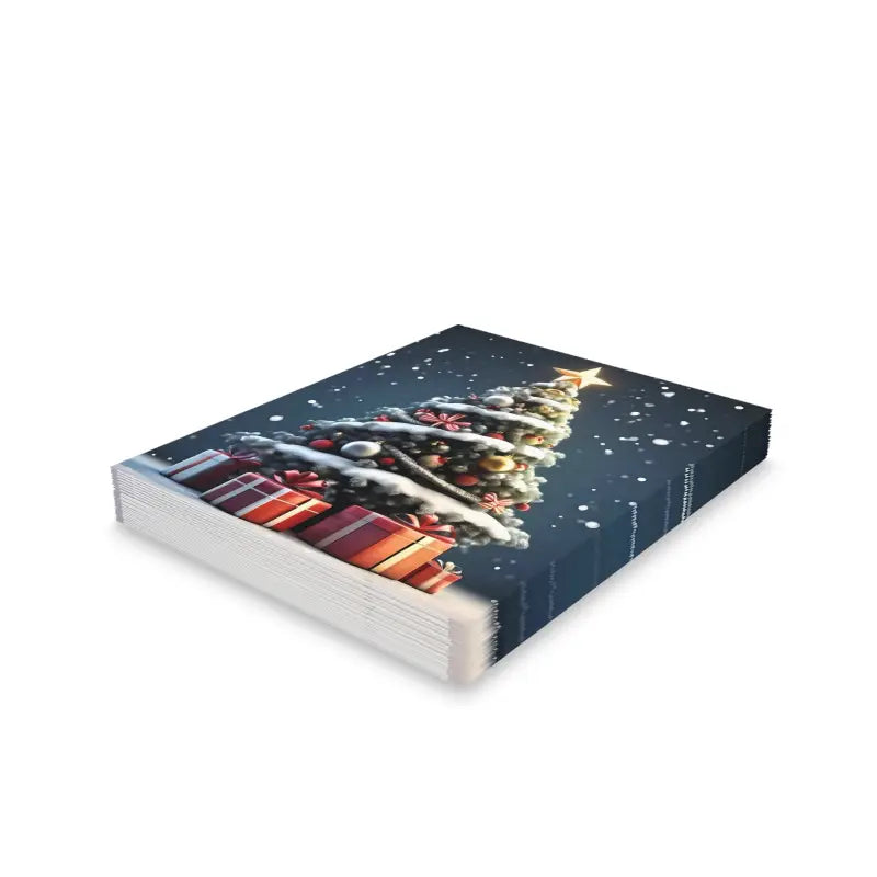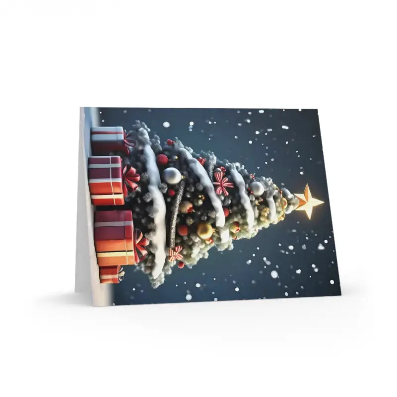 Make your holiday season unforgettable with these enchanting greeting cards. Order now and spread festive cheer with a stunning Christmas tree design, coordinating matching white envelopes, and a dash of women's fashion style in every card!