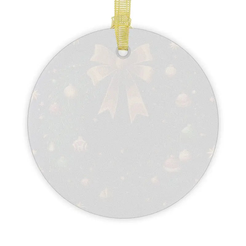 Material: 100% glass ornament with smooth beveled edges and luxurious gold ribbon.
