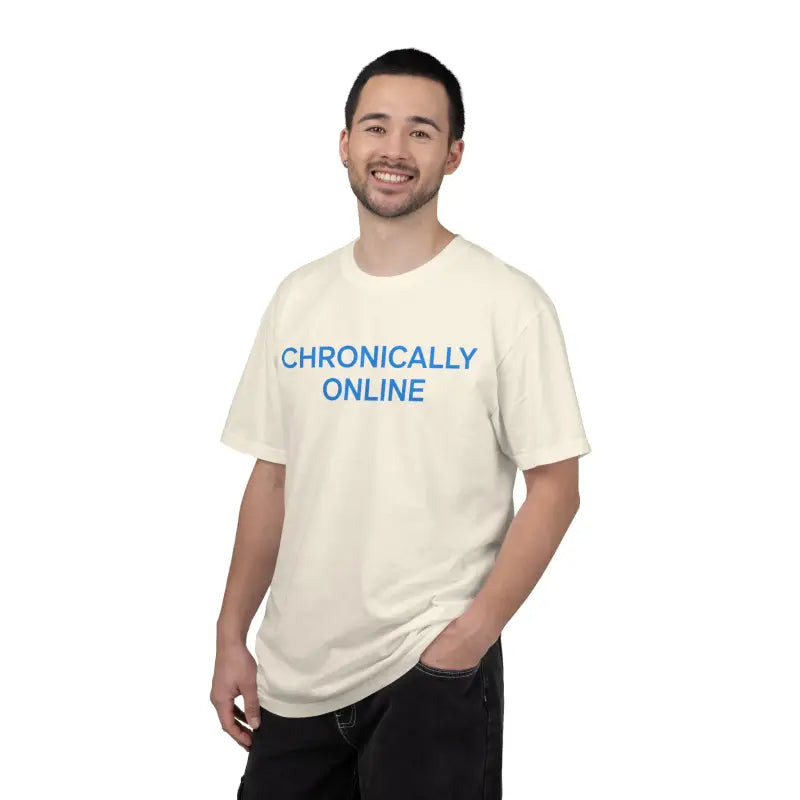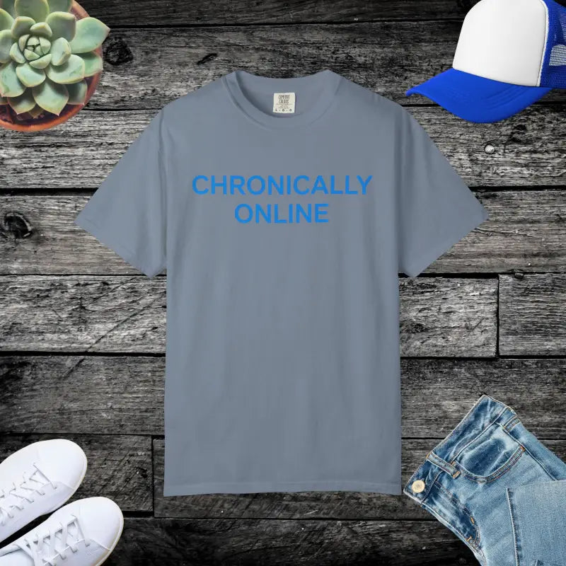 Get your Chronically Online garment-dyed t-shirt today with free shipping on orders over fifty dollars and size options for everyone.
