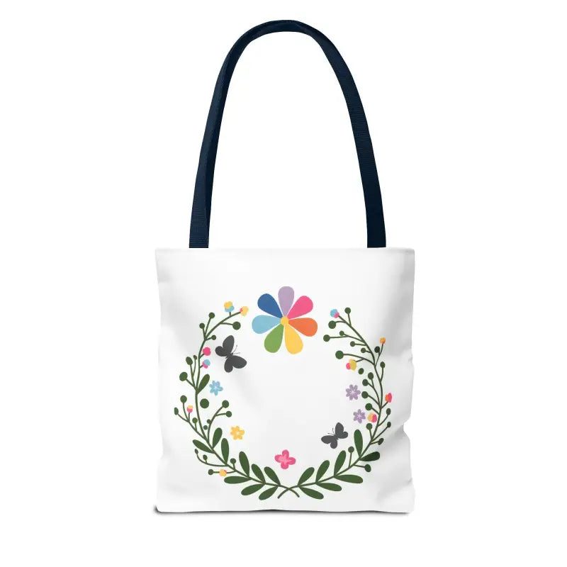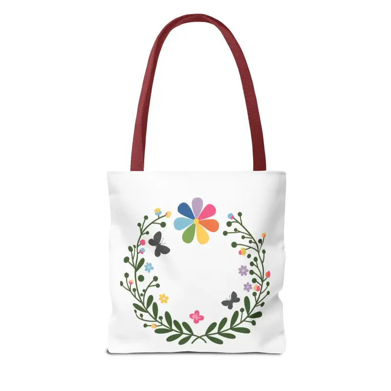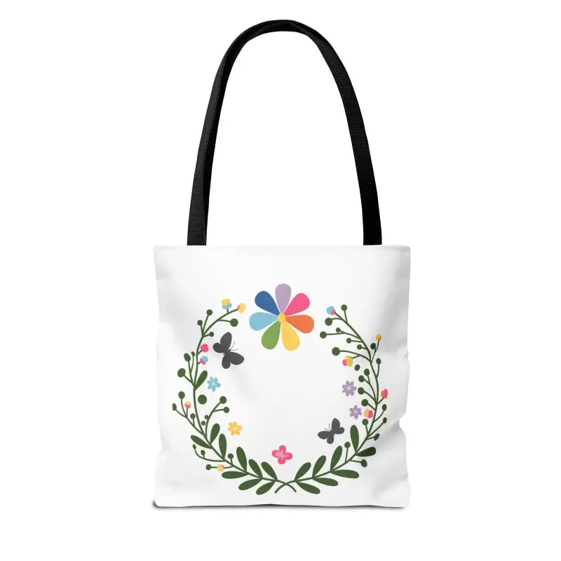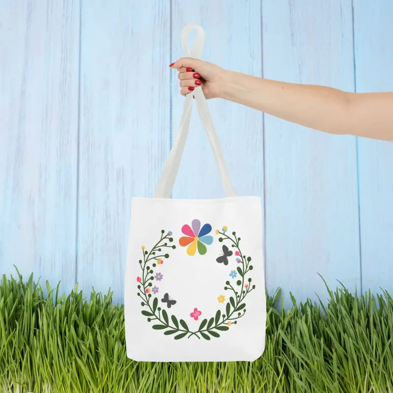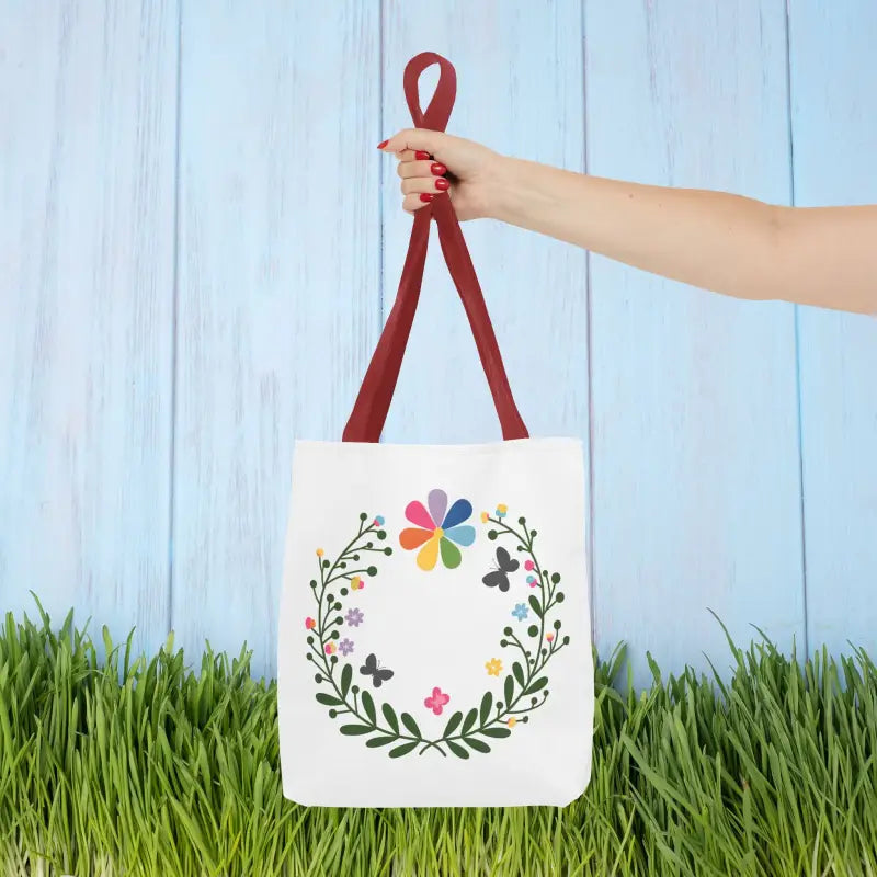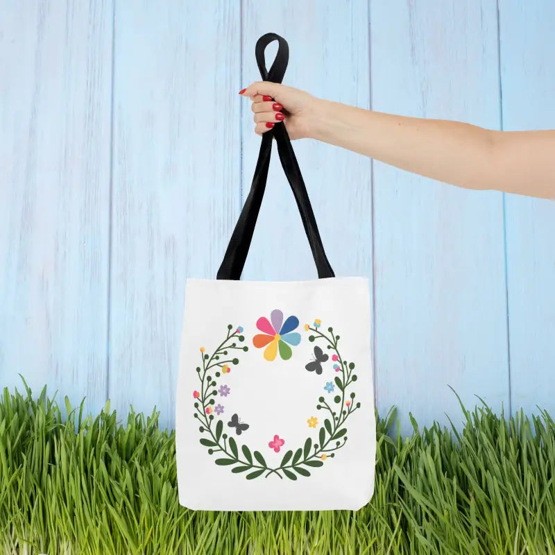 - Features an eye-catching flowers aop tote design that turns heads everywhere you go.
