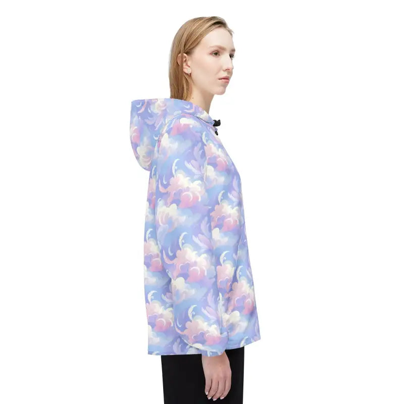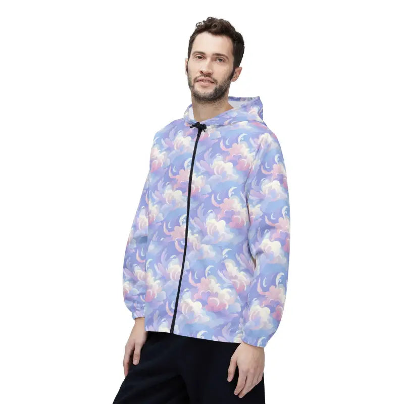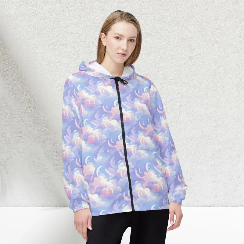 Picture yourself stepping outside on a breezy morning when the air carries that perfect chill that makes you reach for something light but protective. The Cloud Dream Windbreaker wraps you in soft pastel swirls of lavender, pink, and powder blue that look like they were pulled straight from a watercolor sky at dawn. This dream windbreaker jacket feels almost weightless on your shoulders yet creates an instant barrier against gusty winds and surprise drizzles that threaten to cut your outdoor plans short. Every time you slip it on, you are carrying a piece of calm with you, a reminder that style does not have to shout to make an impression. The print hooded shell design means you get full coverage without the bulk, making it the kind of jacket you forget you are wearing until someone stops to compliment the dreamy pattern.